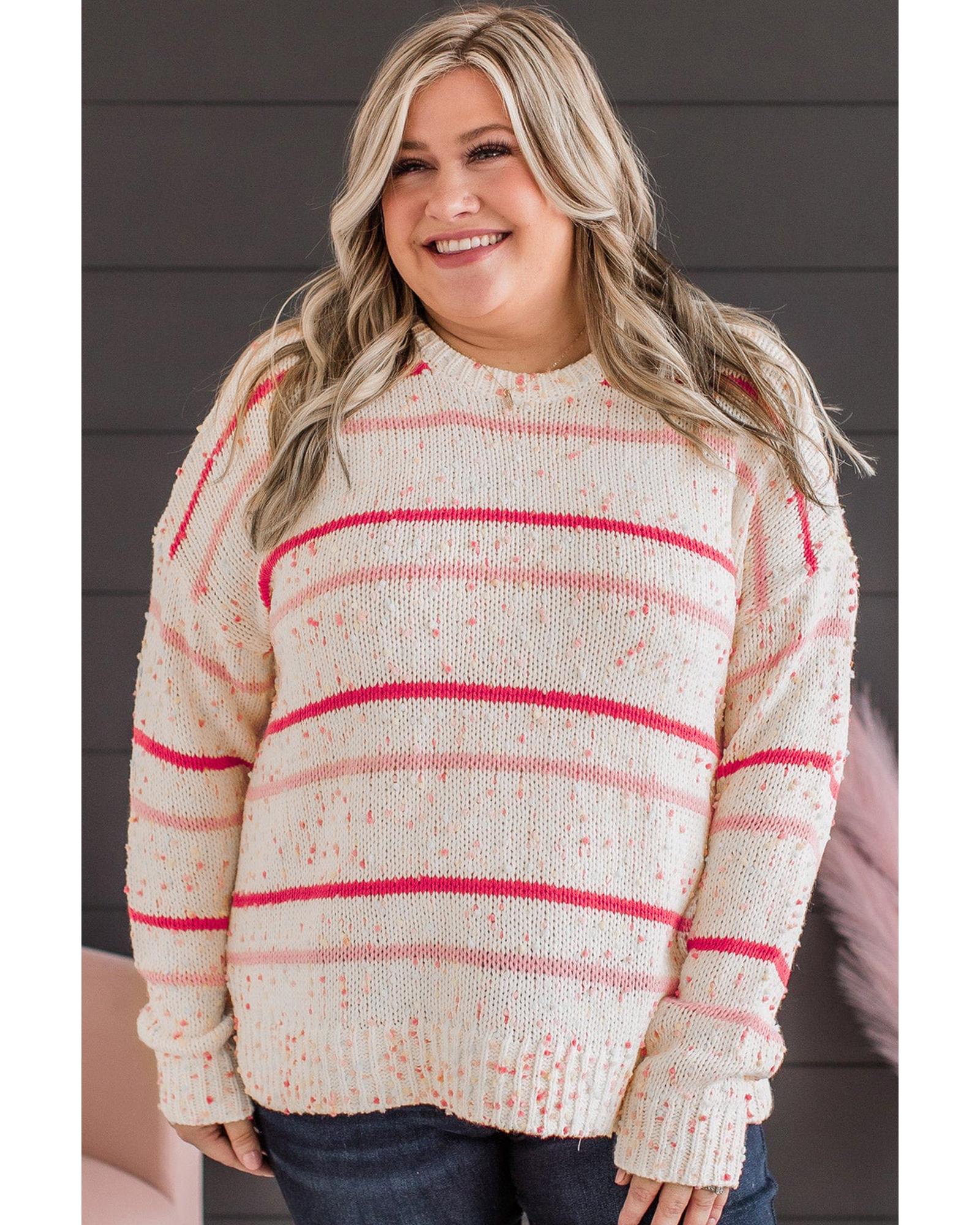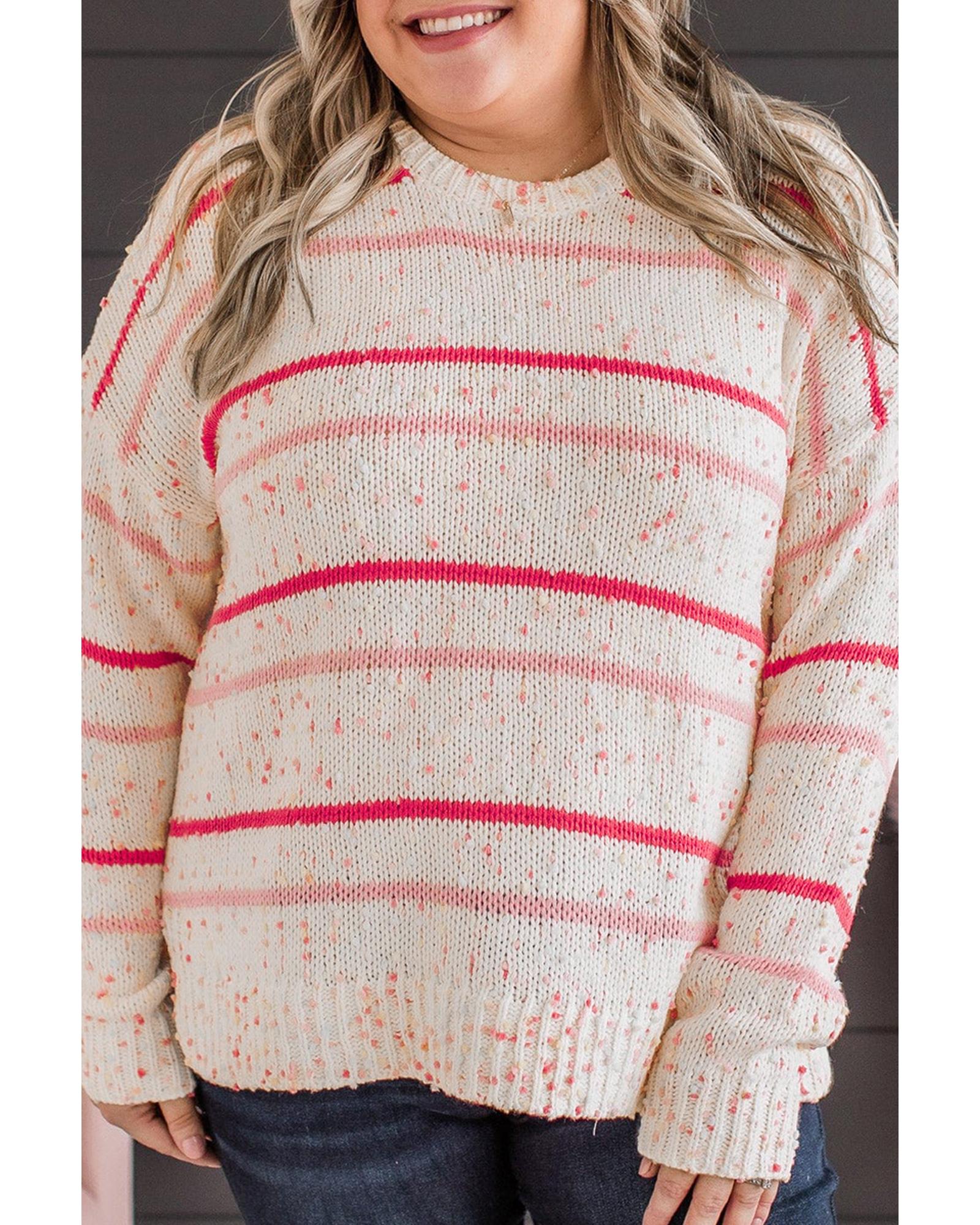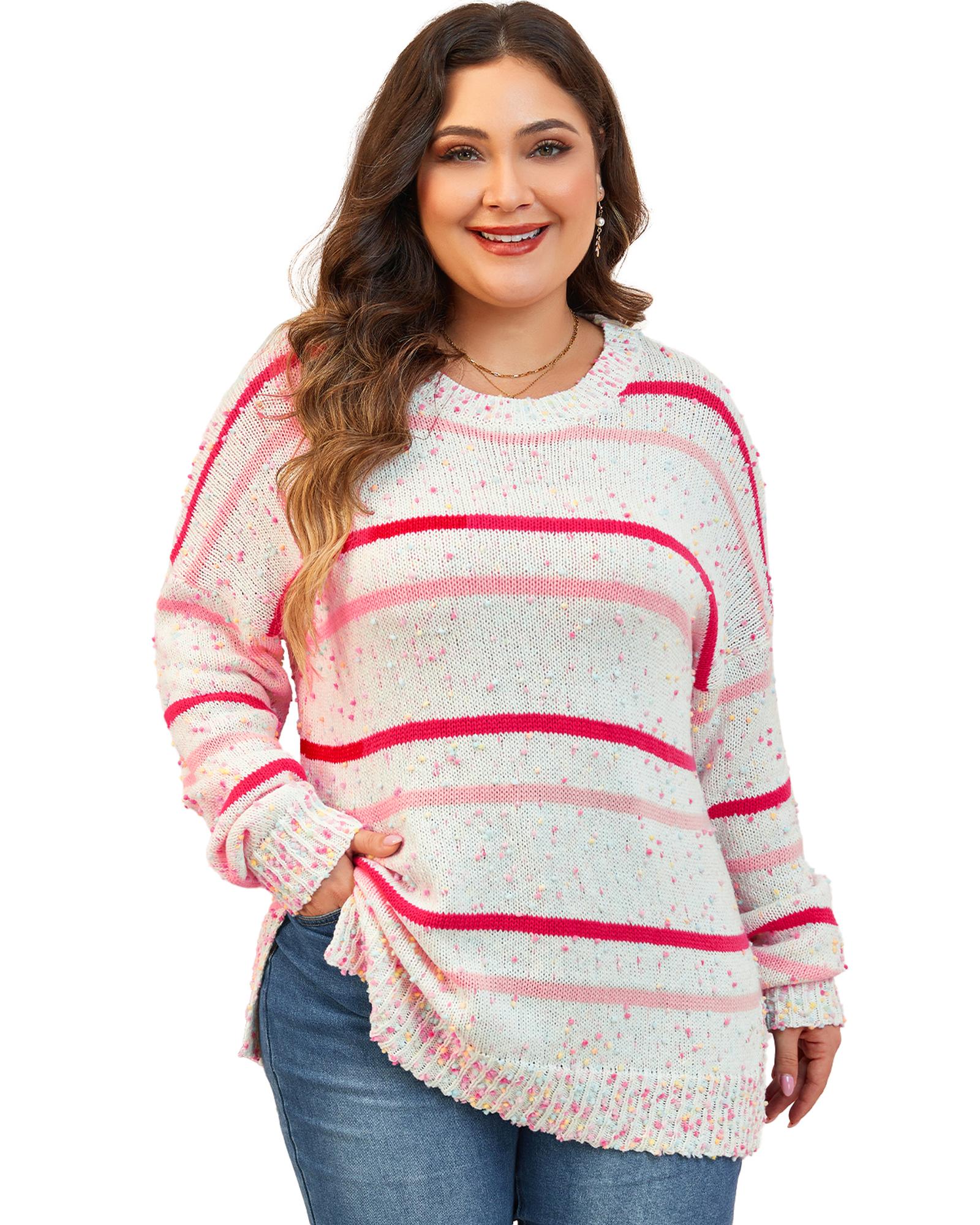 Pink Stripe Drop Shoulder Side Split Plus Size Sweater – 4X