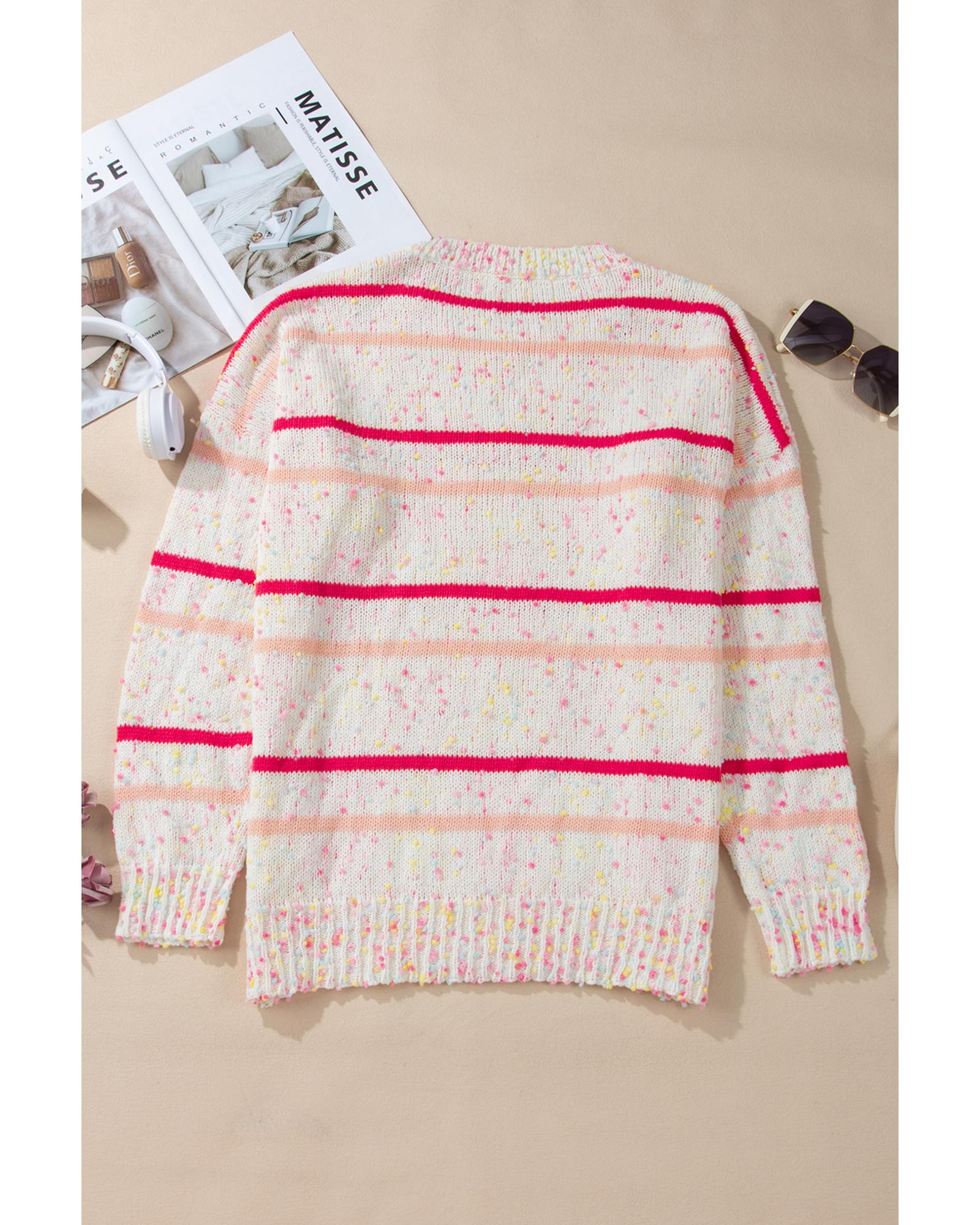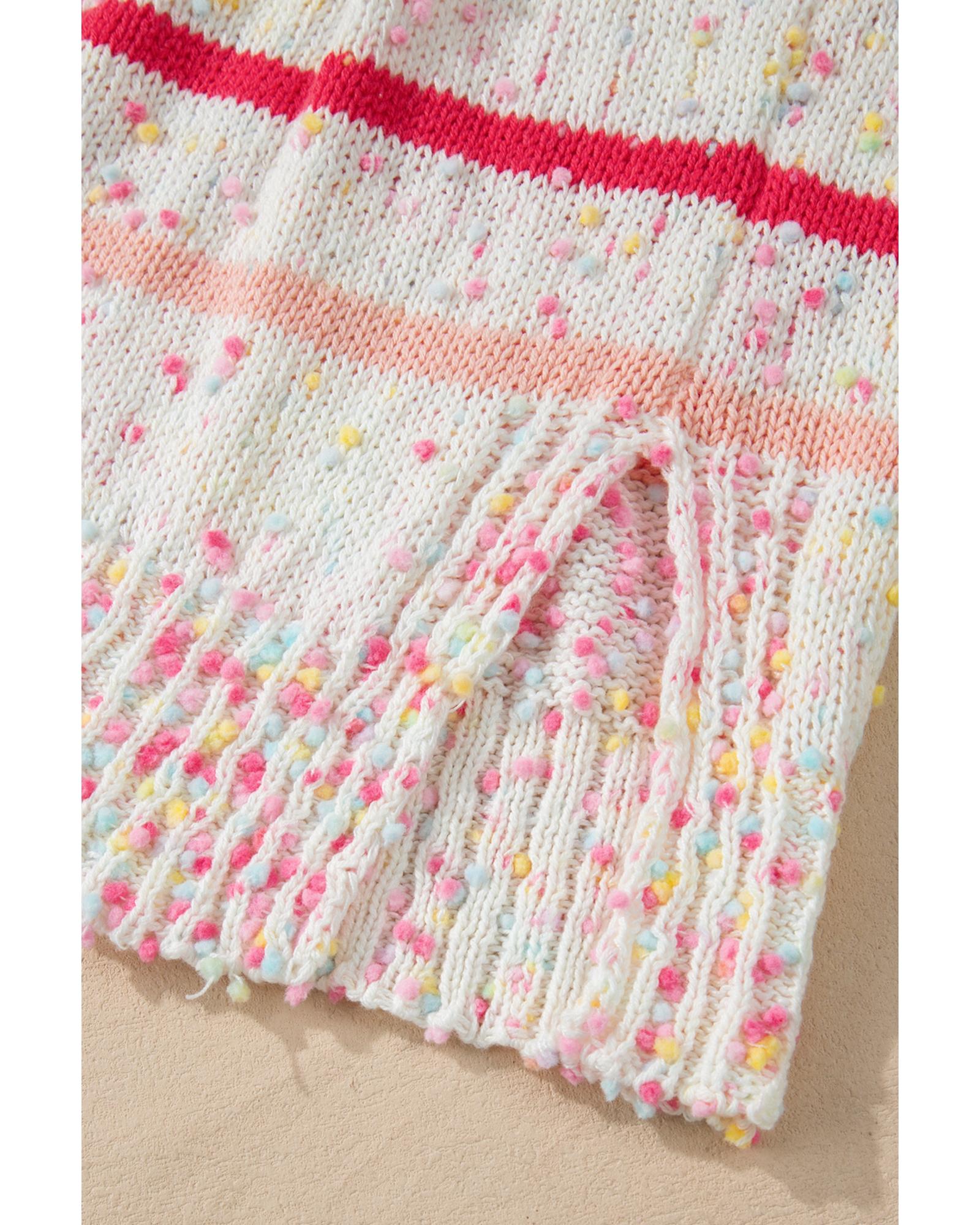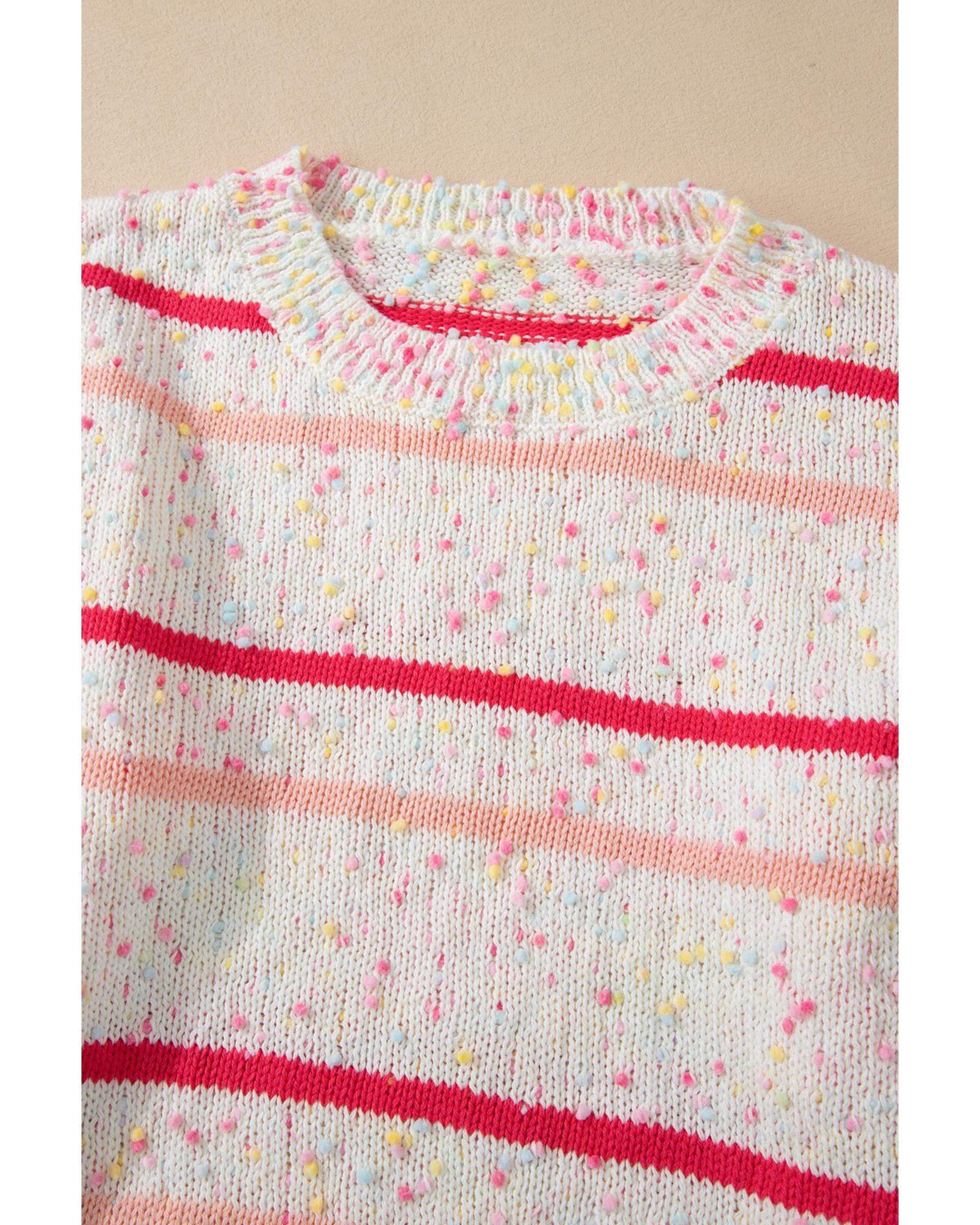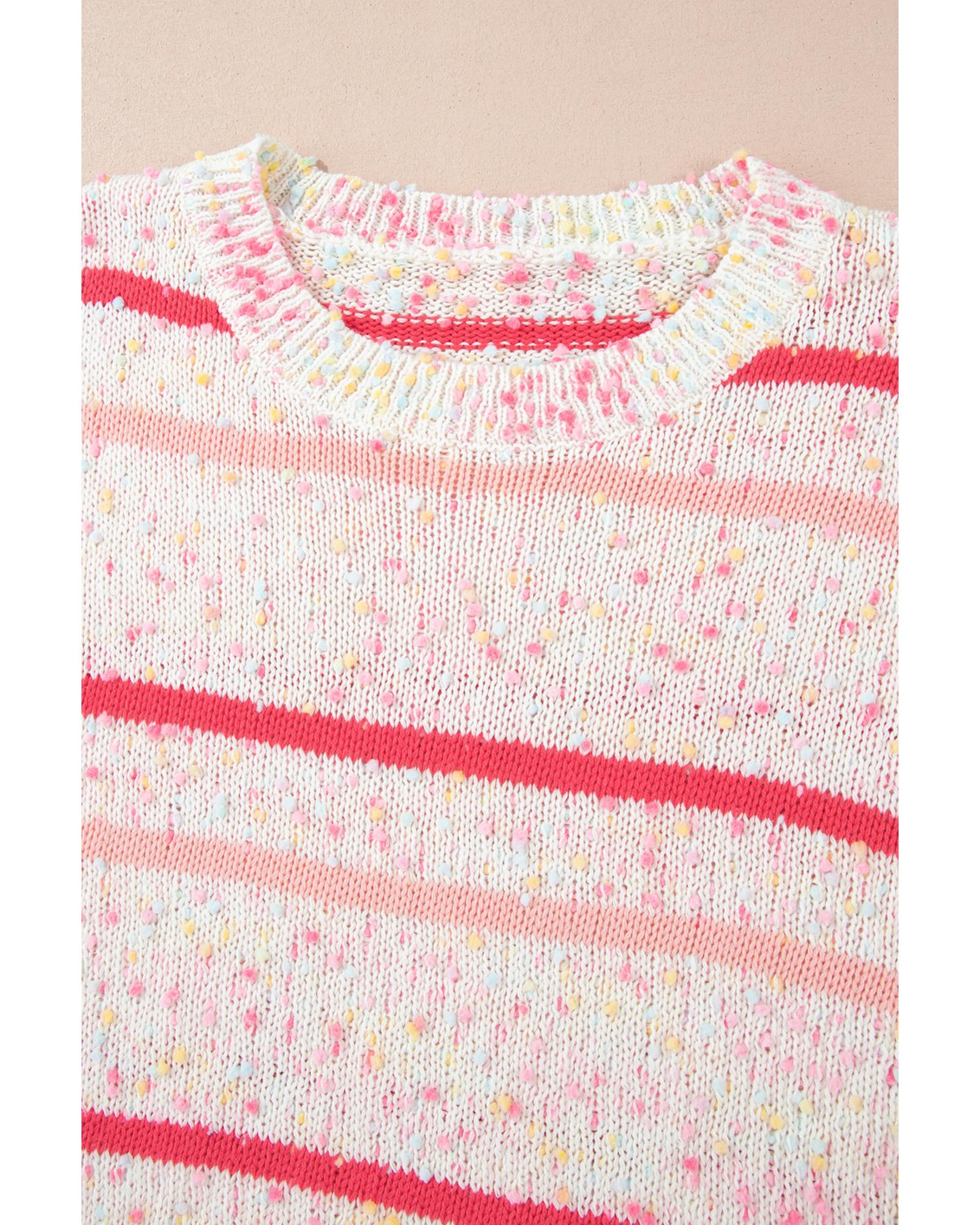 Pink Stripe Drop Shoulder Side Split Plus Size Sweater – 4X