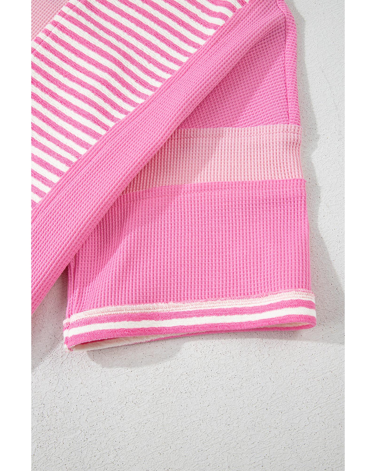 Pink Stripe Patchwork Colorblock Plus Size T Shirt – 1X