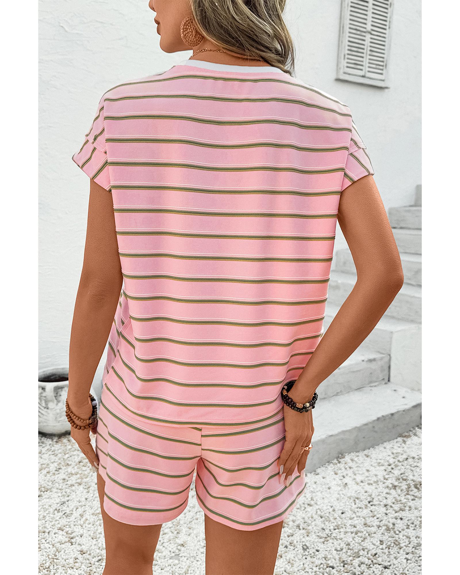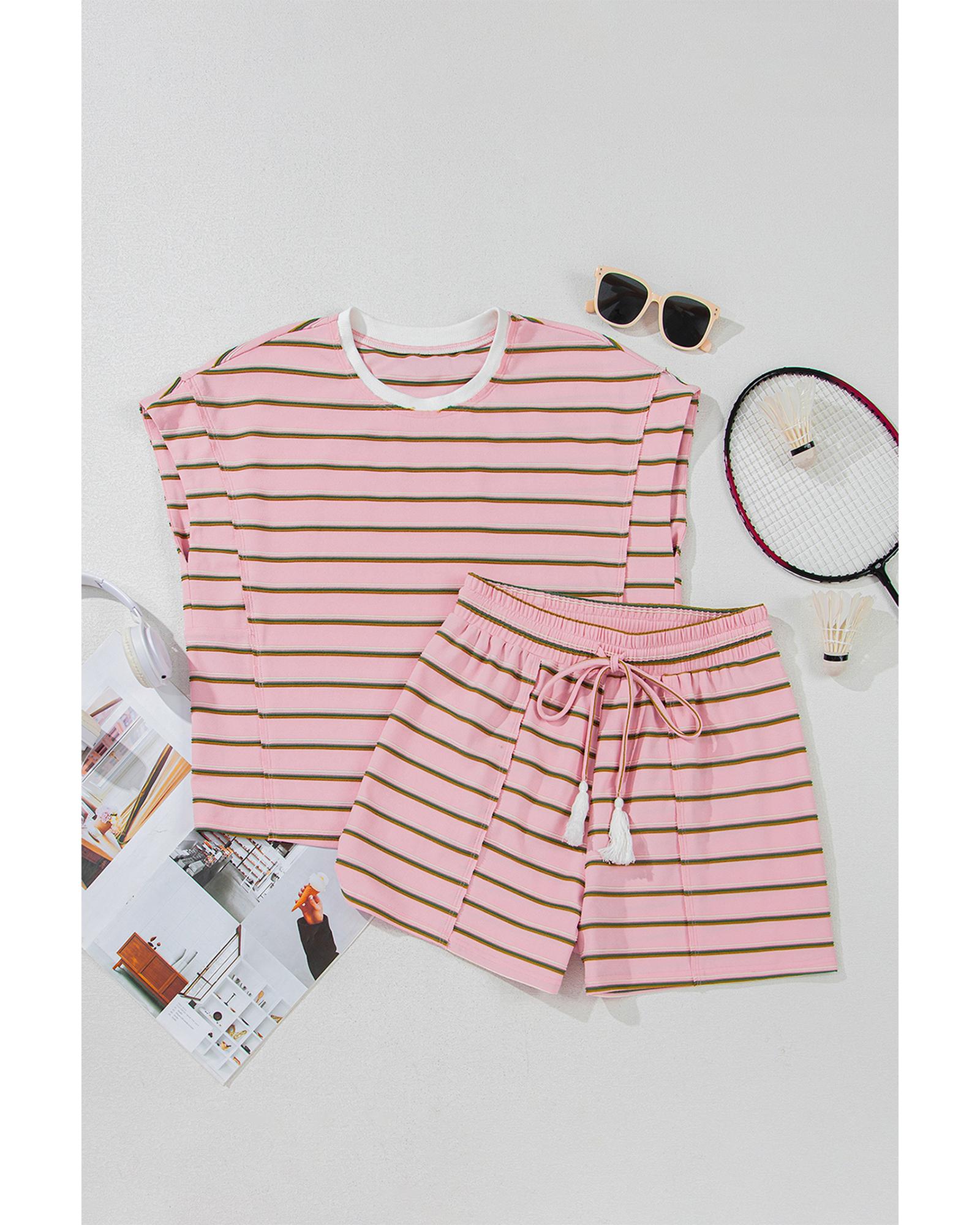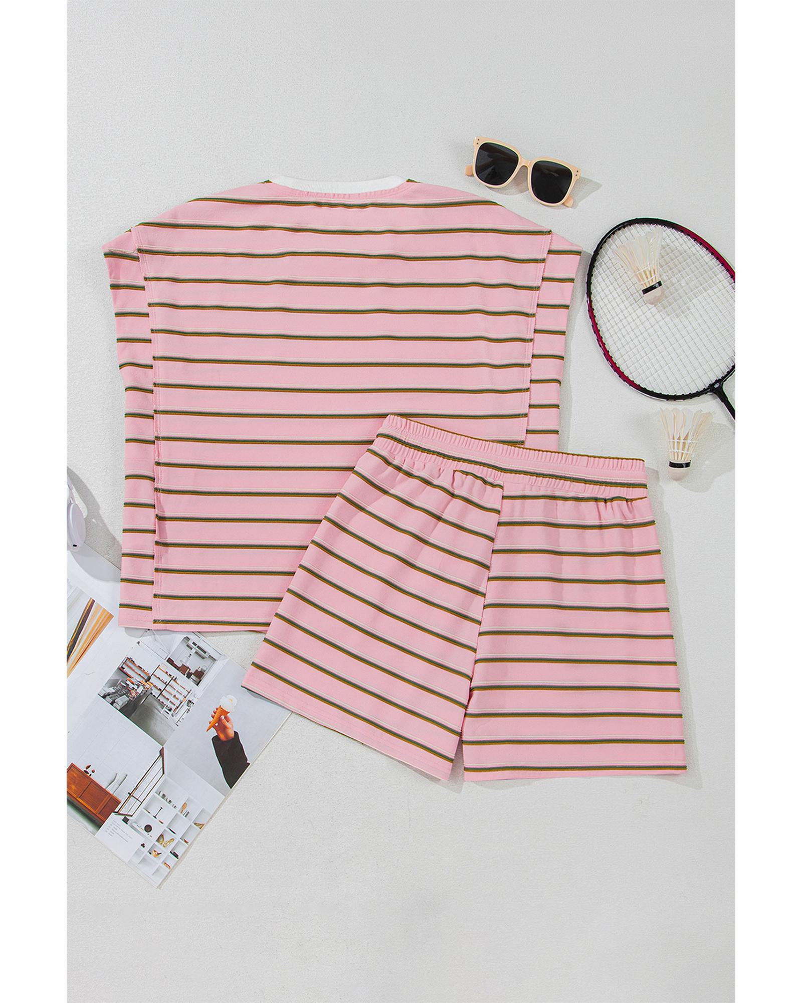 Pink Stripe Wide Short Sleeve Tee and Short Set – S