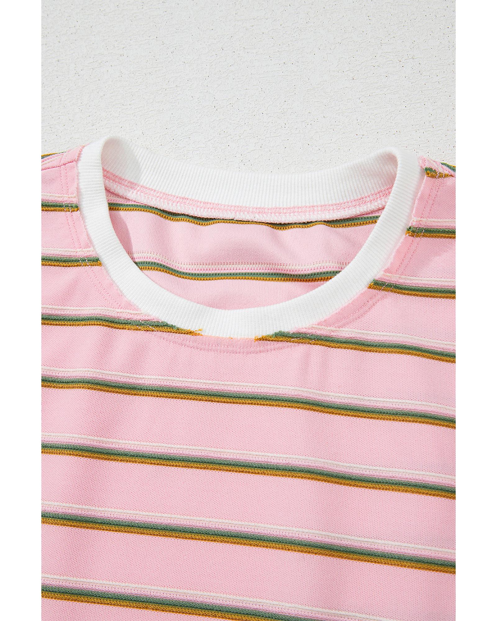 Pink Stripe Wide Short Sleeve Tee and Short Set – XL