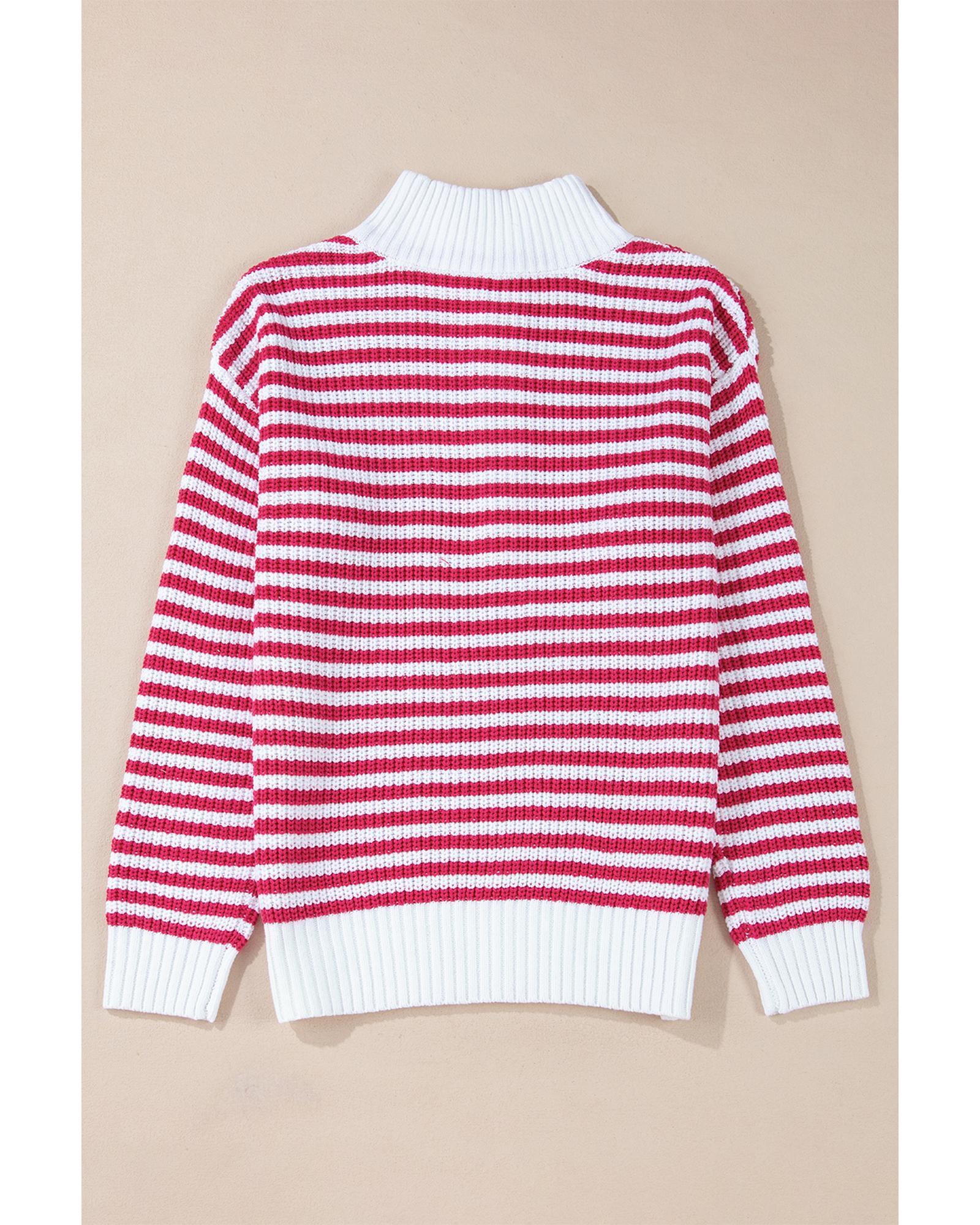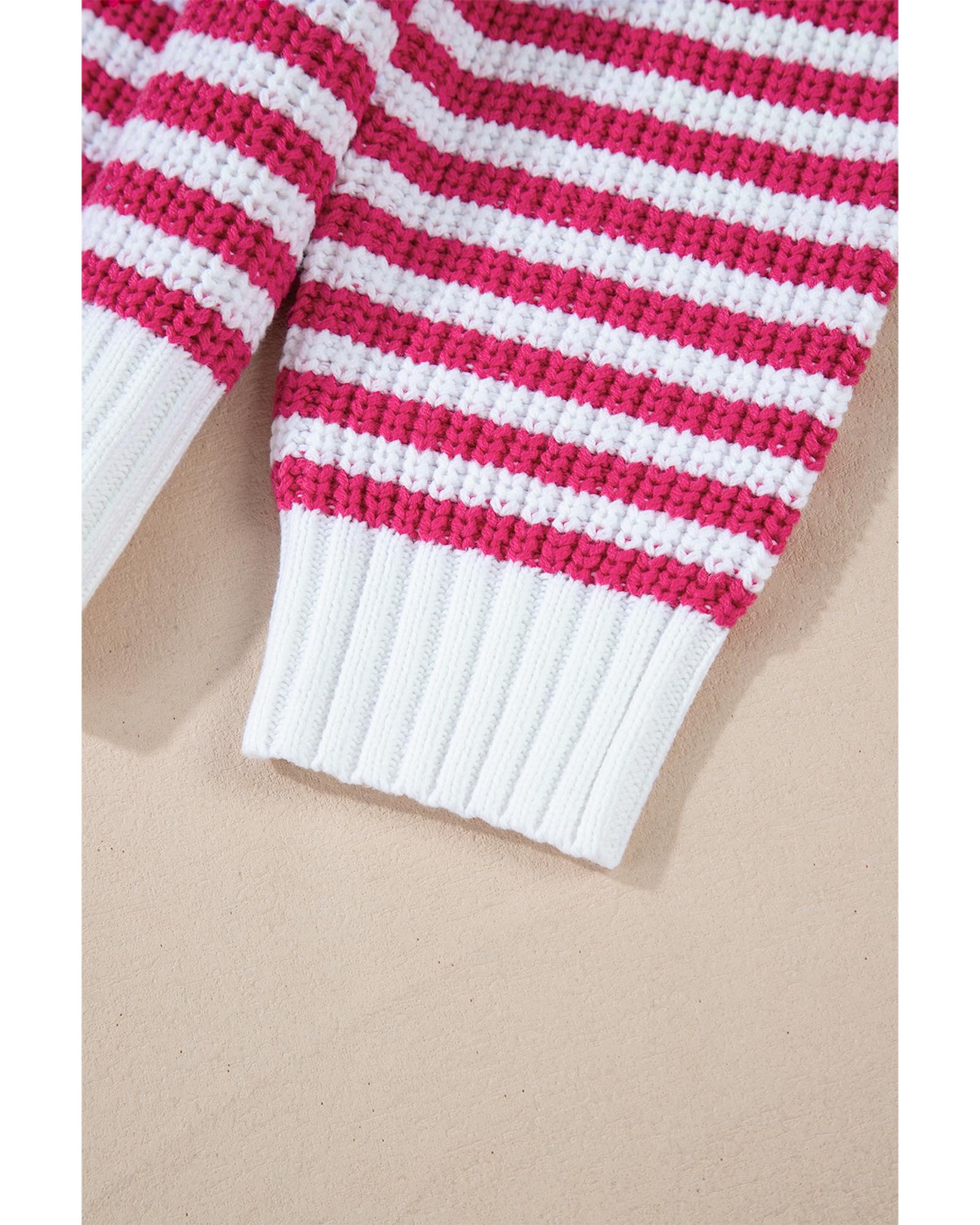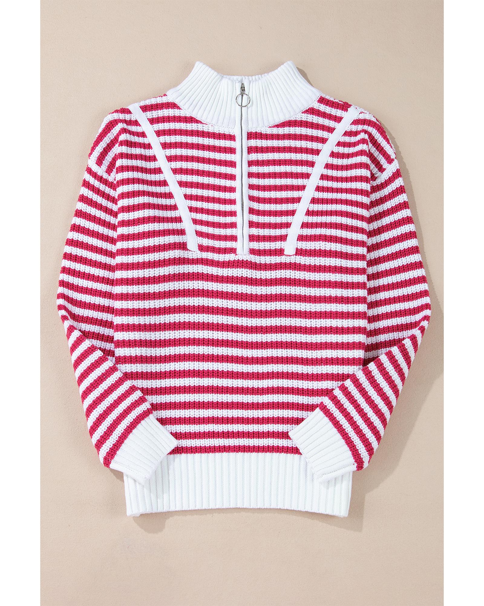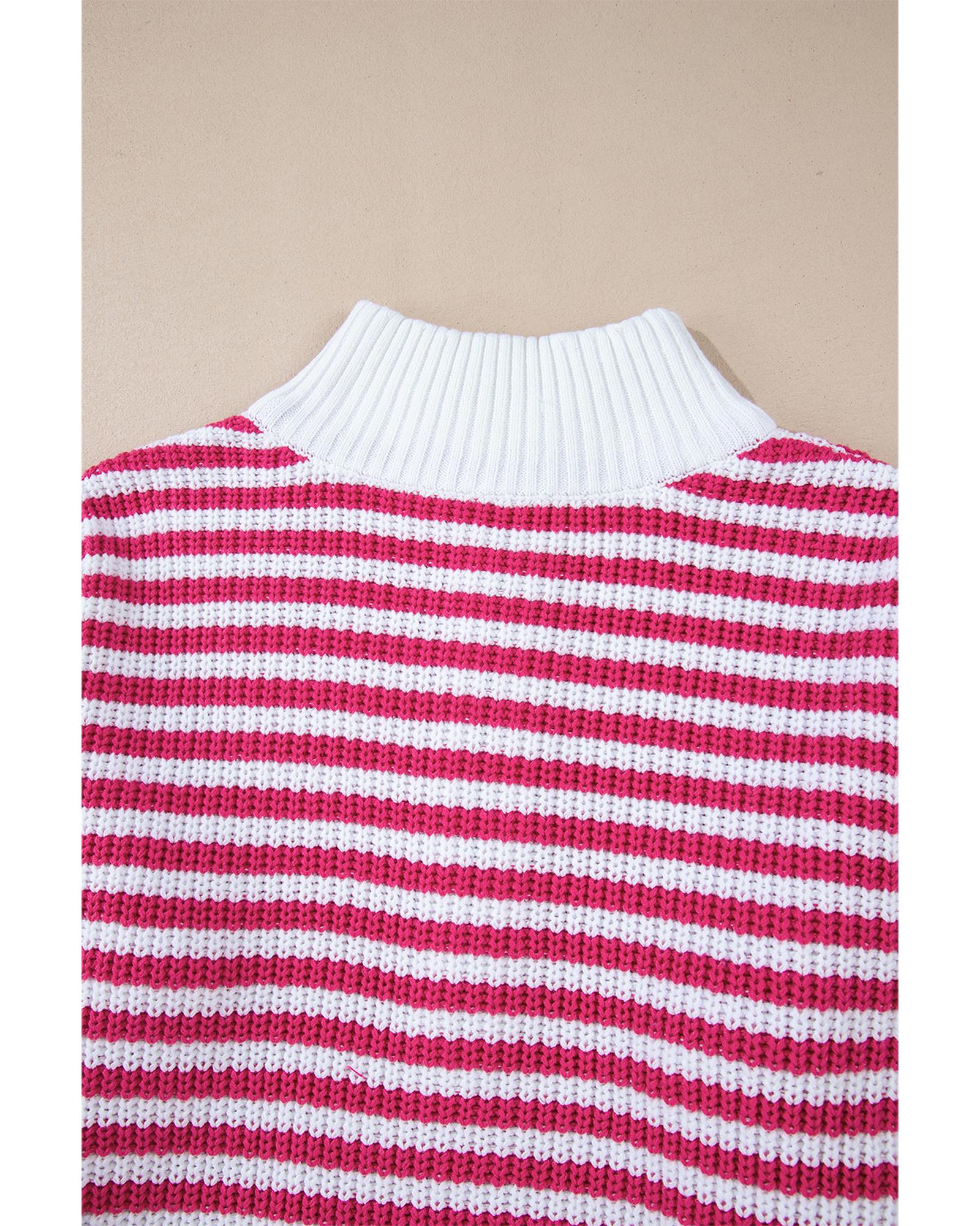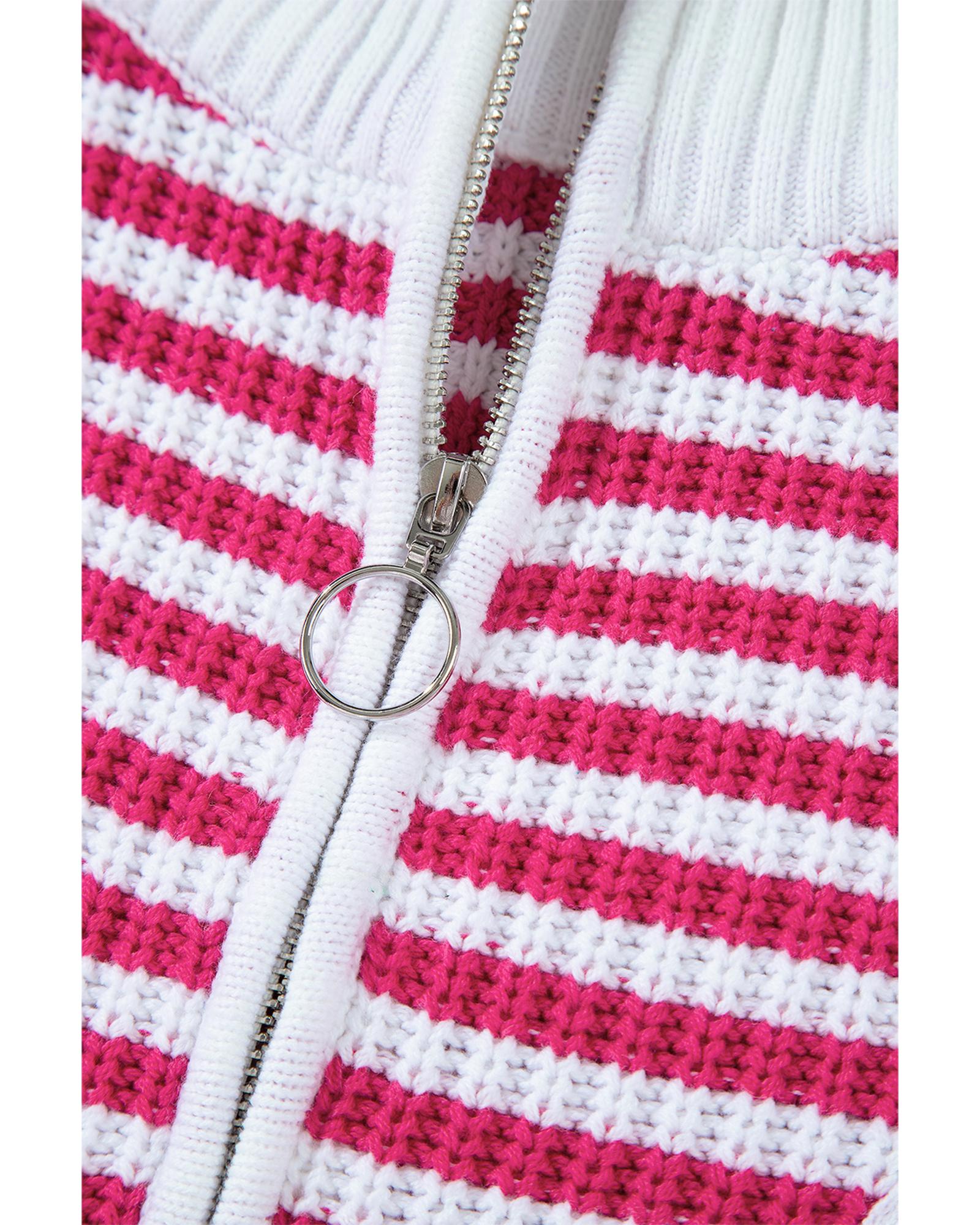 Pink Stripe Zip up Collar Drop Shoulder Sweater – S