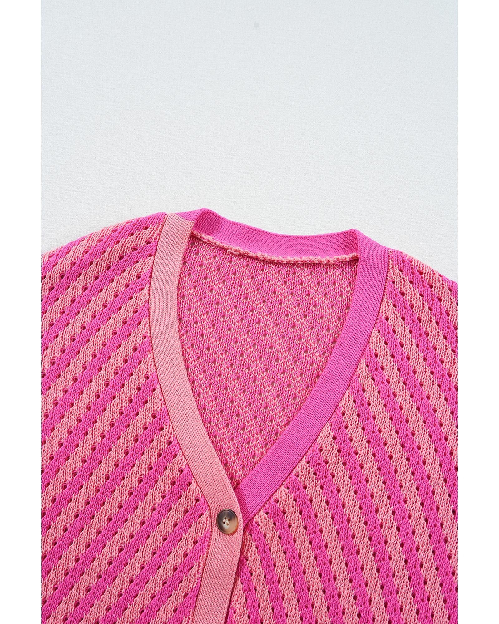 Pink Striped Buttoned V Neck Drop Shoulder Cardigan – XL
