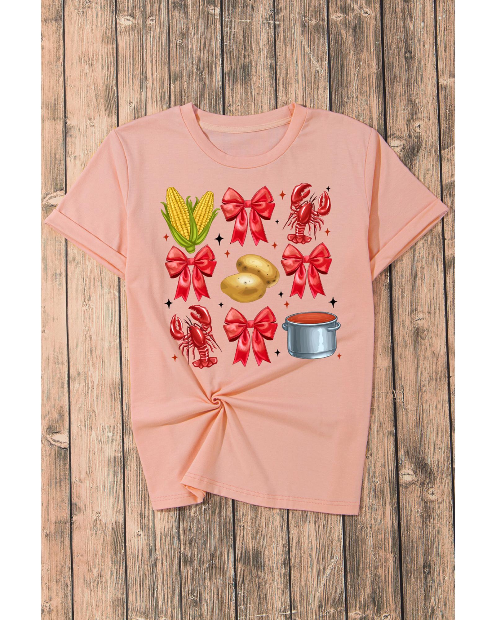 - Pink Summer Food Bow Crawfish Printed T Shirt