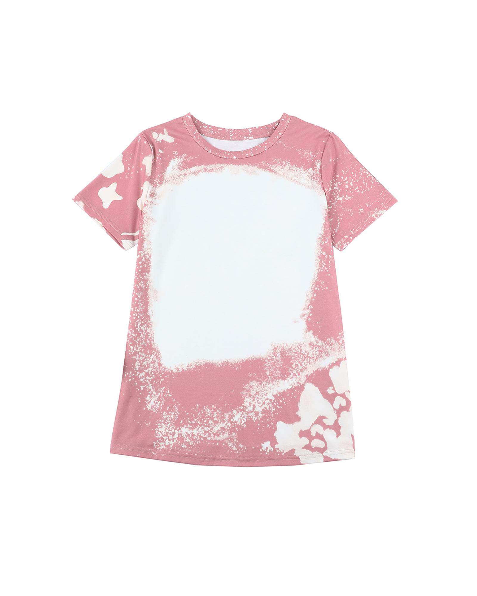 - Comfy Pink Tie Dye Color Bleached Short Sleeve T Shirt