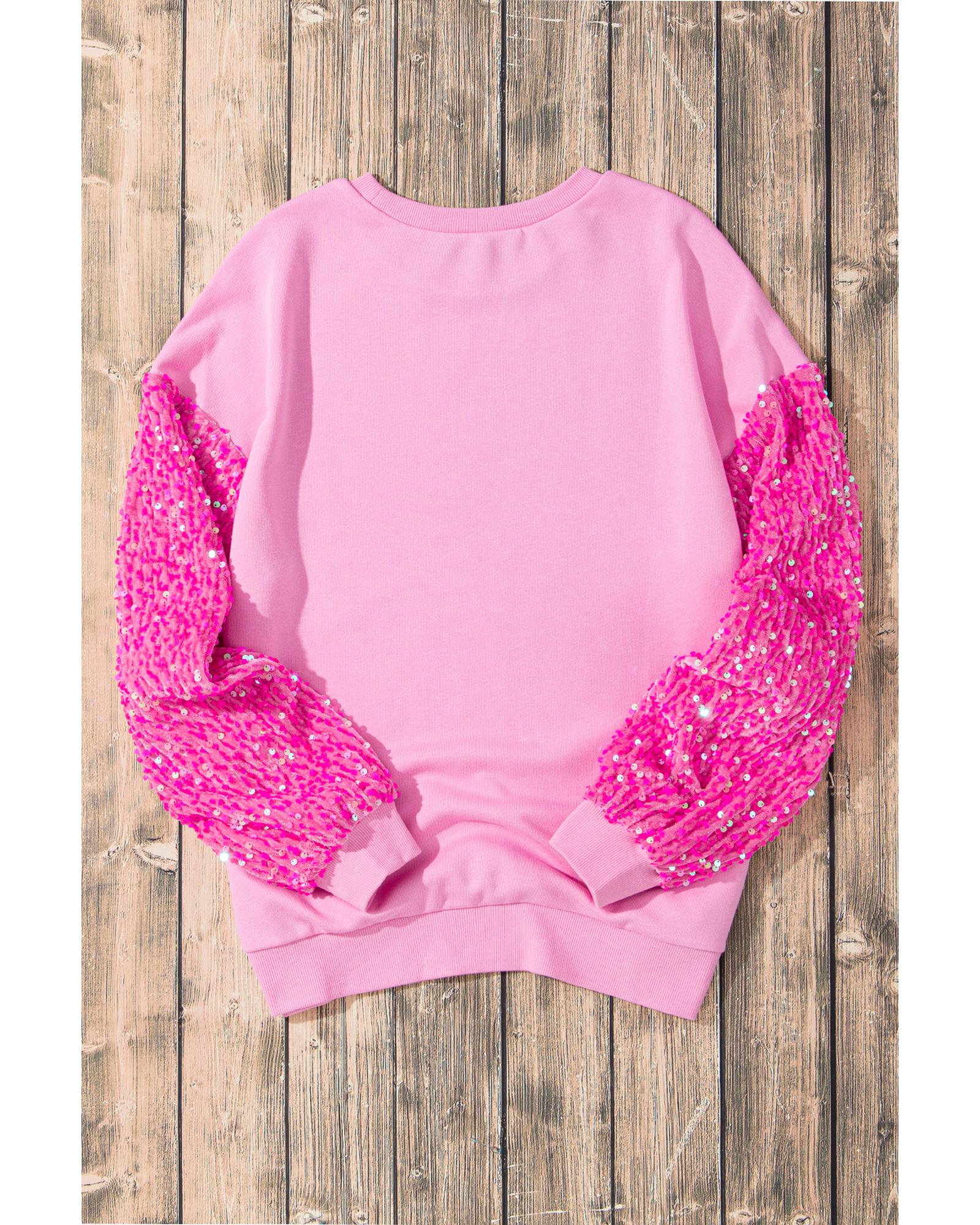 Pink Valentines Heart Graphic Sequin Patchwork Long Sleeve Top – XL