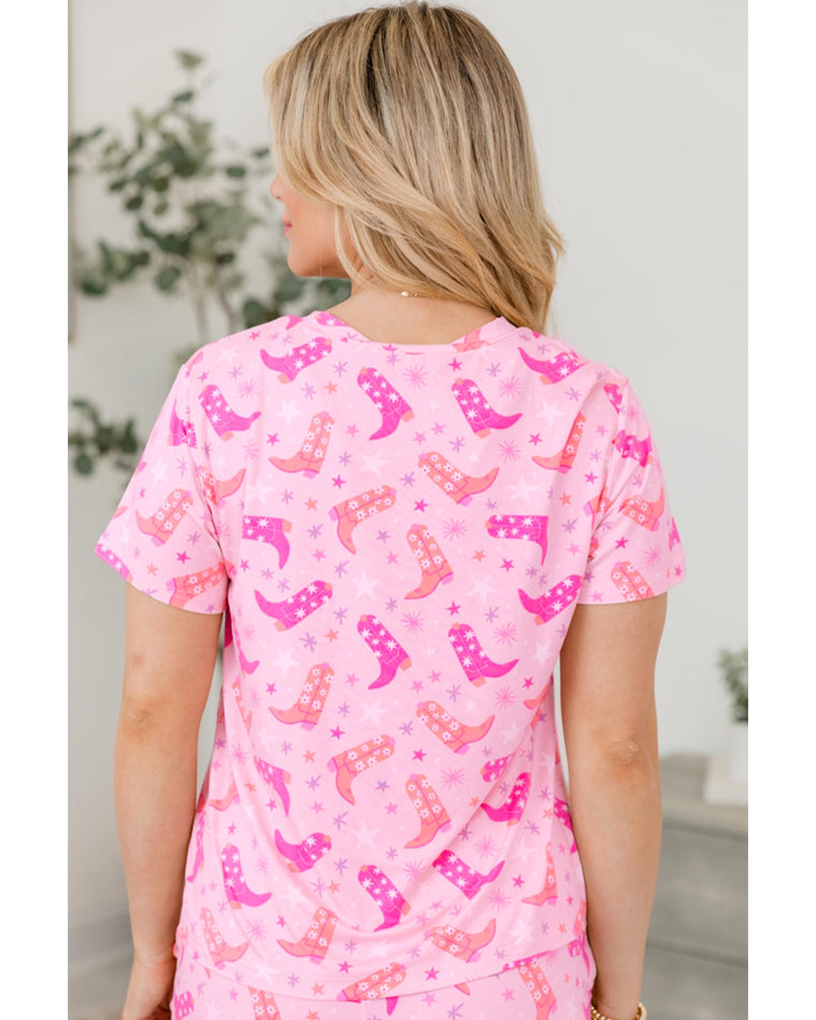 Pink Western Boots Printed Short 2pcs Lounge Set – L