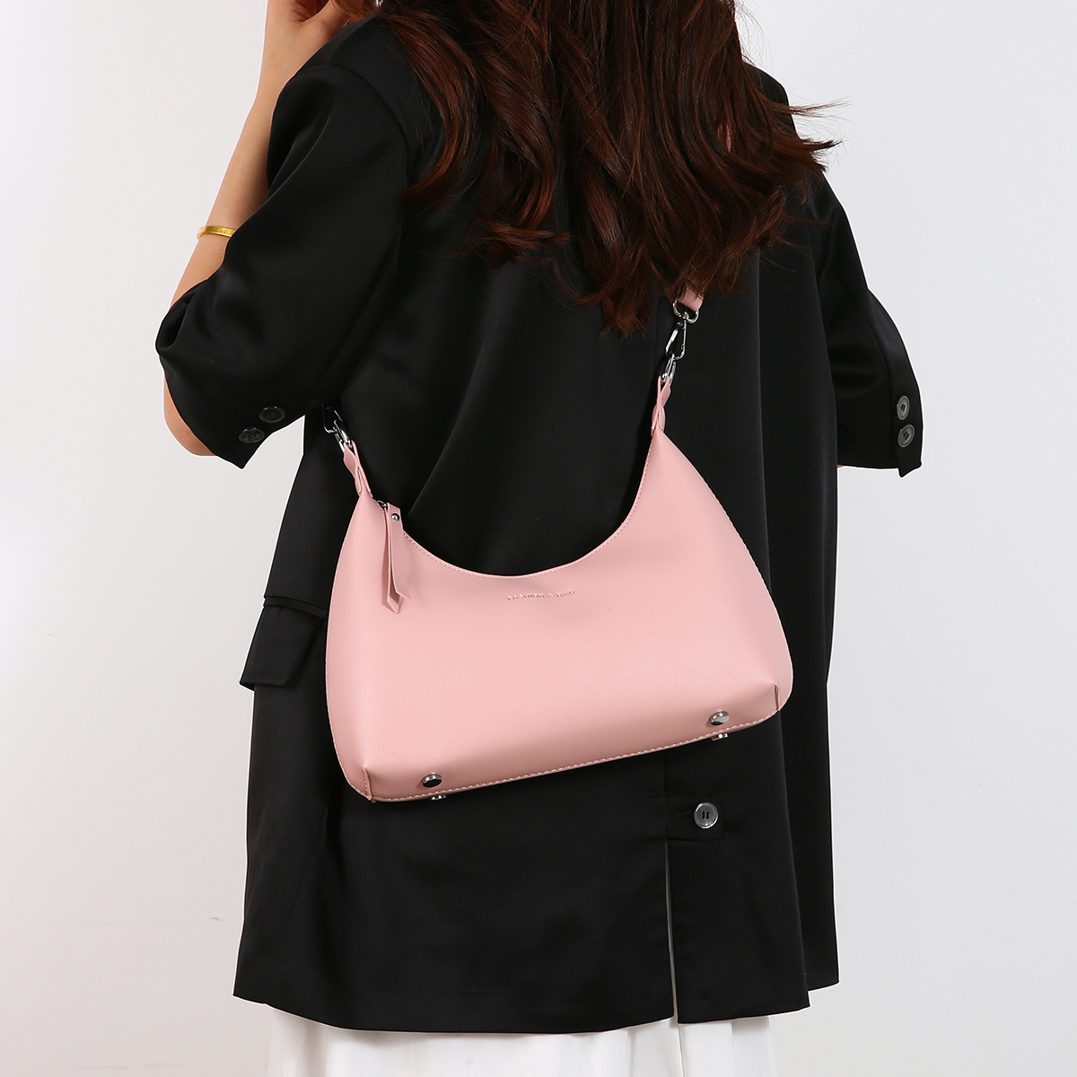 Pink Women’s Trendy PU Leather Shoulder Bag – Fashionable Underarm Hobo Bag with Adjustable Strap