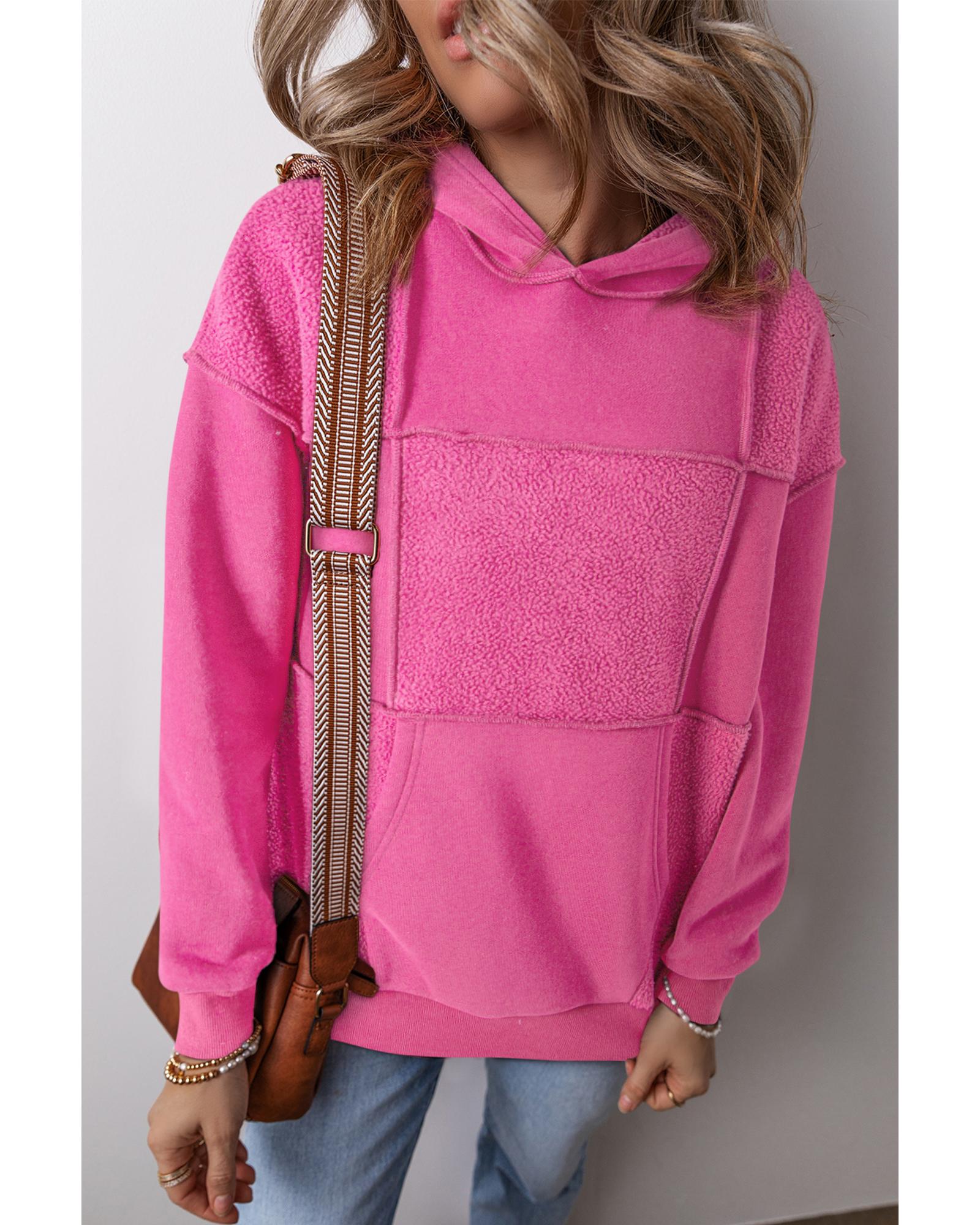 Pitaya Pink Mineral Wash Terry Patchwork Drawstring Hoodie – M
