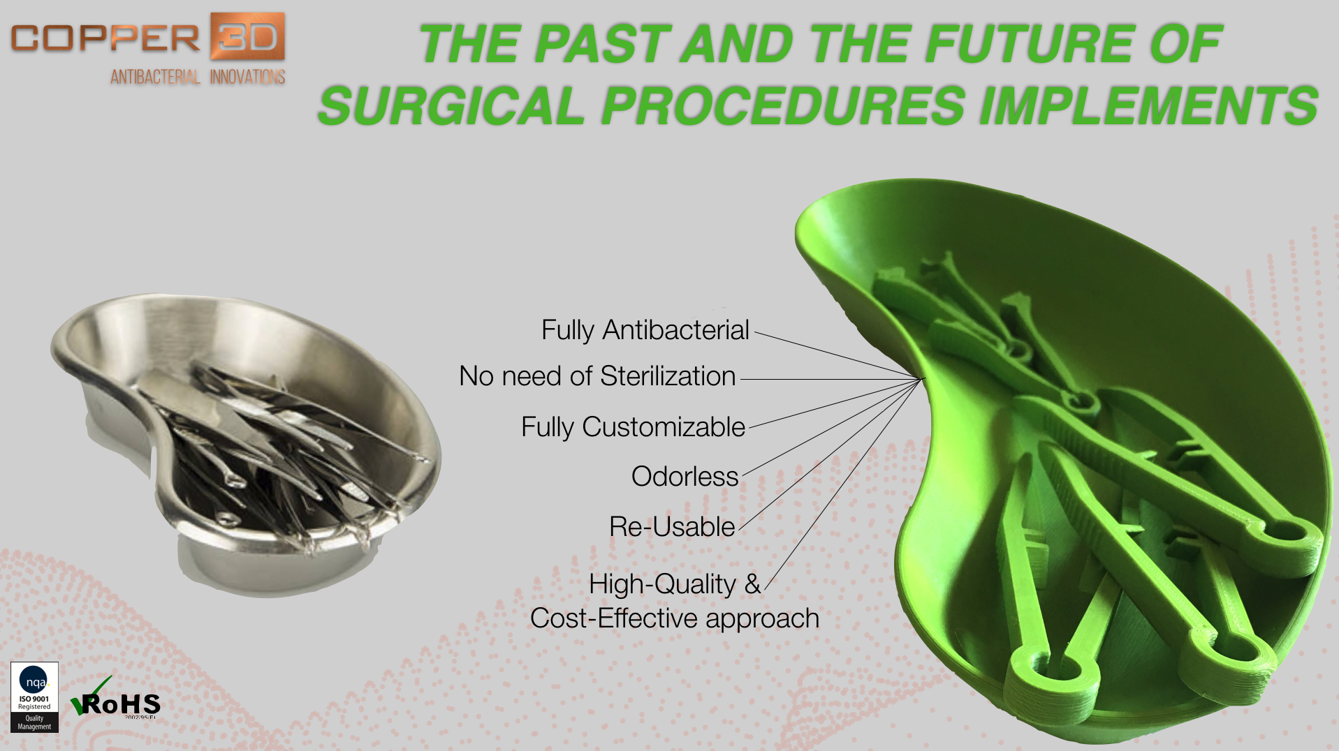 - Ideal for the manufacture of other medical applications where its dangerous to have bacterial contamination, such as postoperative prostheses, wound dressing and surgical equipment