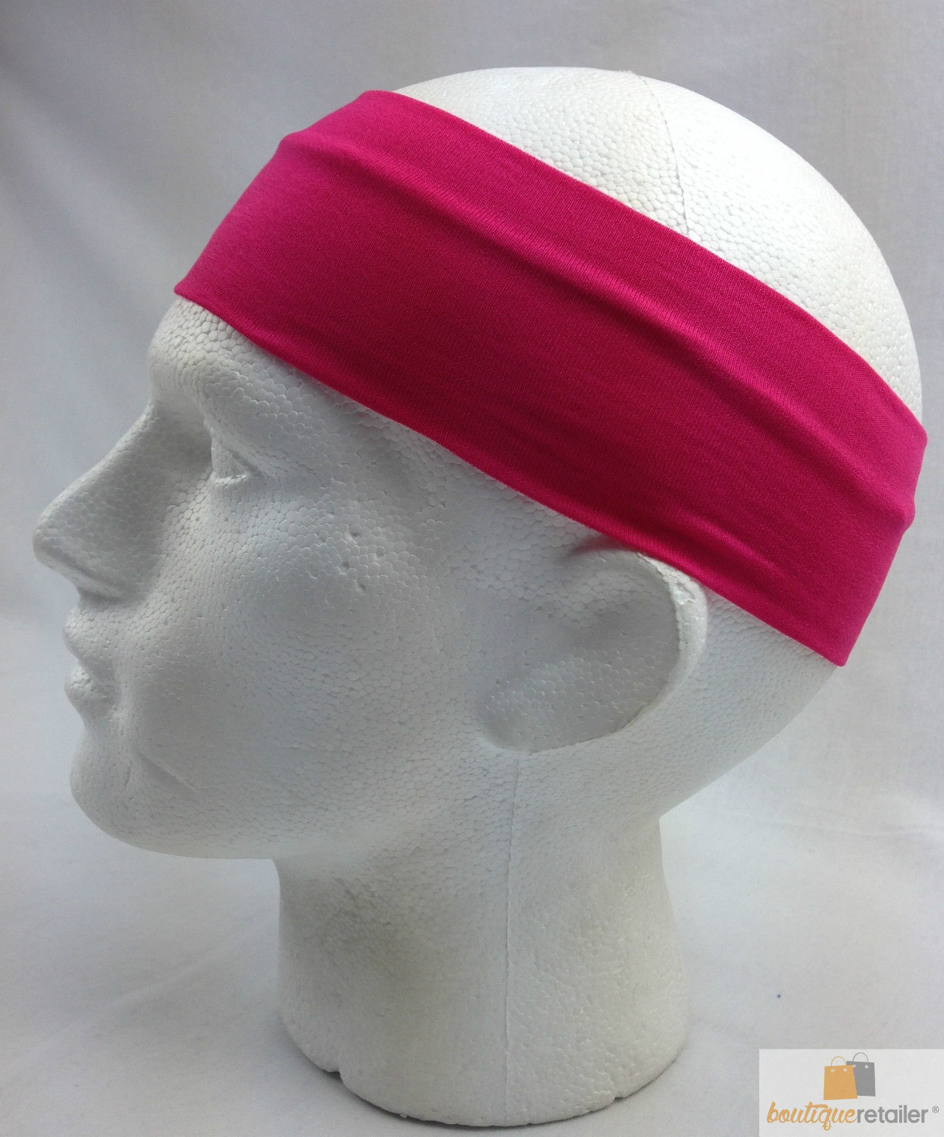PLAIN HEADBAND Elastic Stretch Sports Yoga Hair Band Unisex 8cm Wide Wrap – Hot Pink