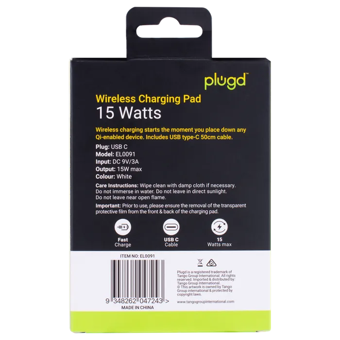 PLUGD 15W USB-C Qi Wireless Charging Pad for iPhone & Android Phones