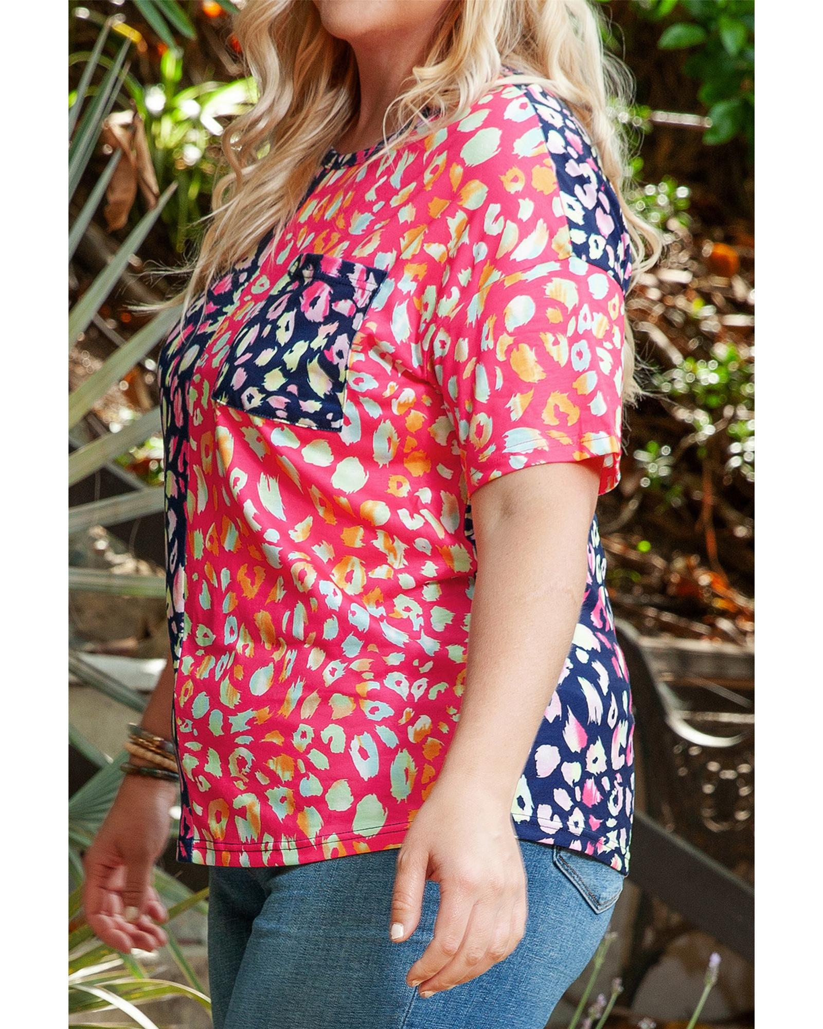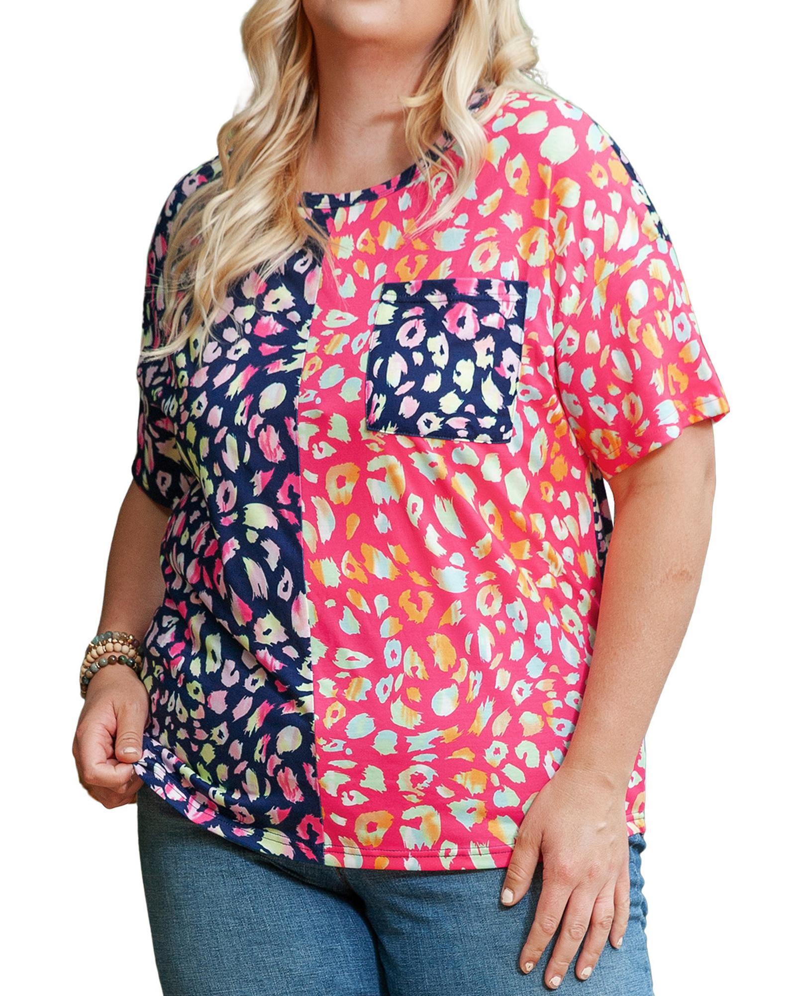 Plus Size Leopard Colorblock Short Sleeve Top – 1X
