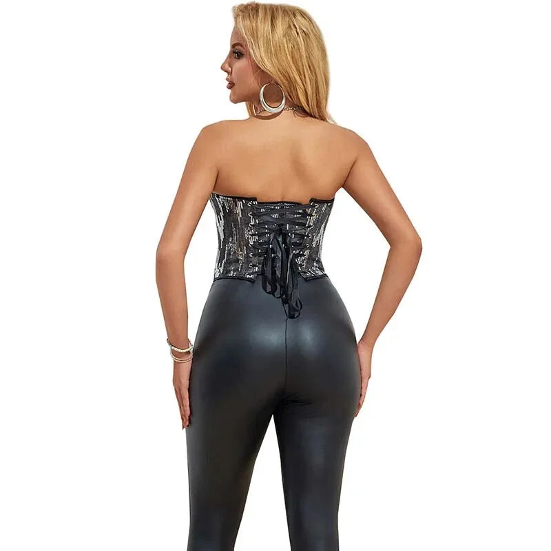 Plus Size Silver Sequin Crop Top With Lace Detail 14 Fishbones Support S-Xxxl – Xxxl