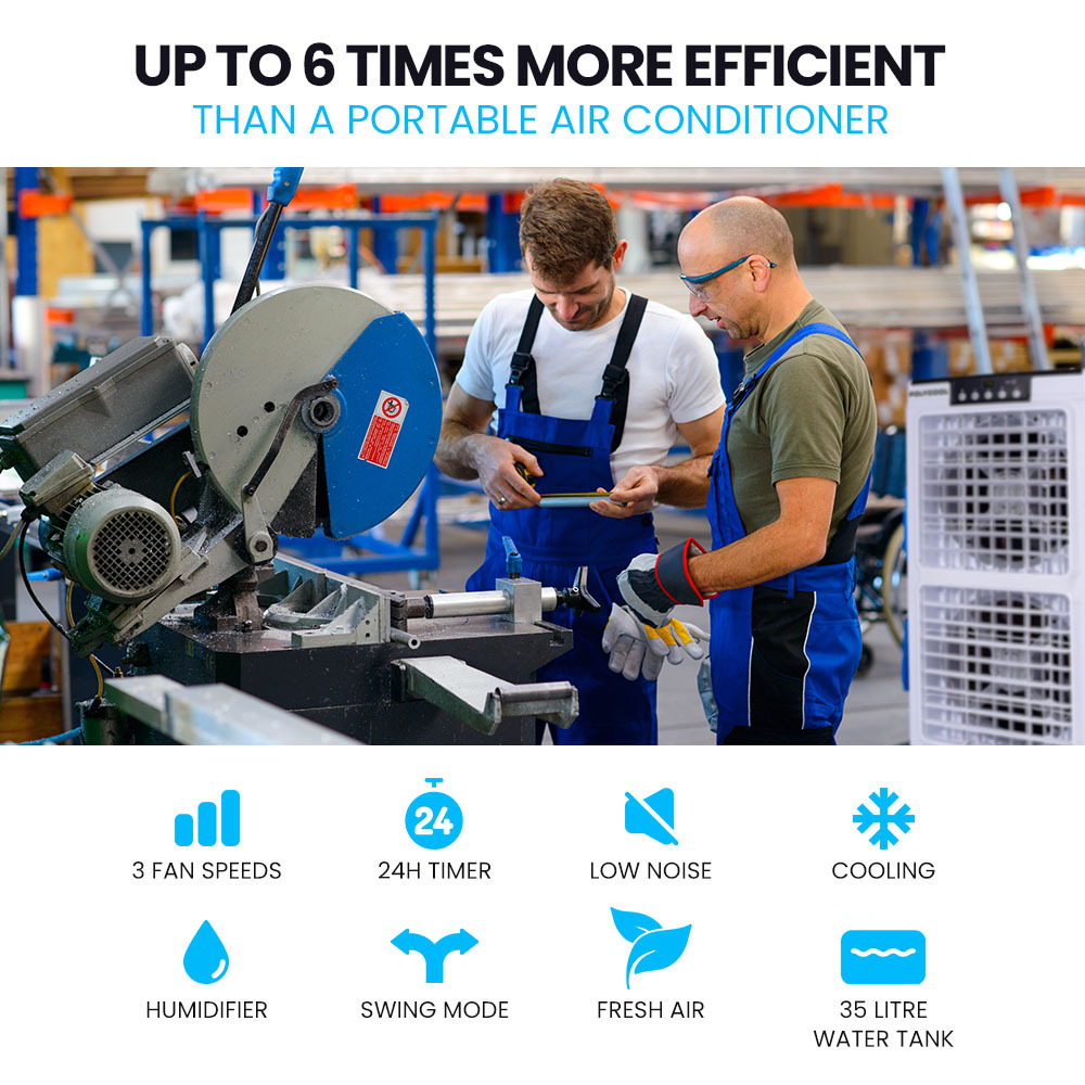 POLYCOOL 35L 220W Portable Evaporative Air Cooler 24 Hour Timer 4 in 1 Cooling Fan w/ Remote