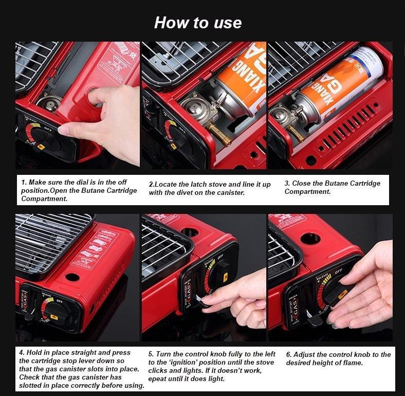 Portable Gas Stove Burner Butane BBQ Camping Gas Cooker With Non Stick Plate Red without Fish Pan and Lid