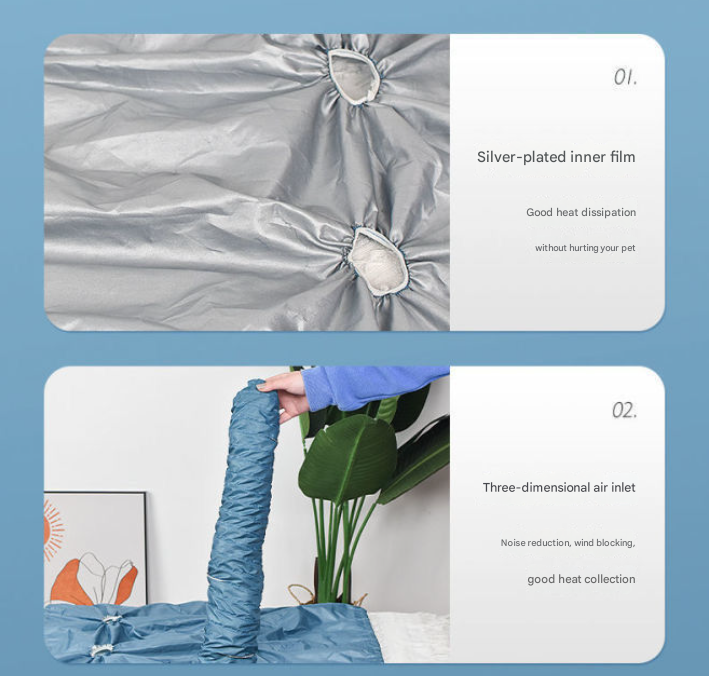 - Rapid Drying Technology: The inner layer is lined with a silver-plated film that effectively circulates warm air, drying your pet’s fur evenly and quickly from the roots out.