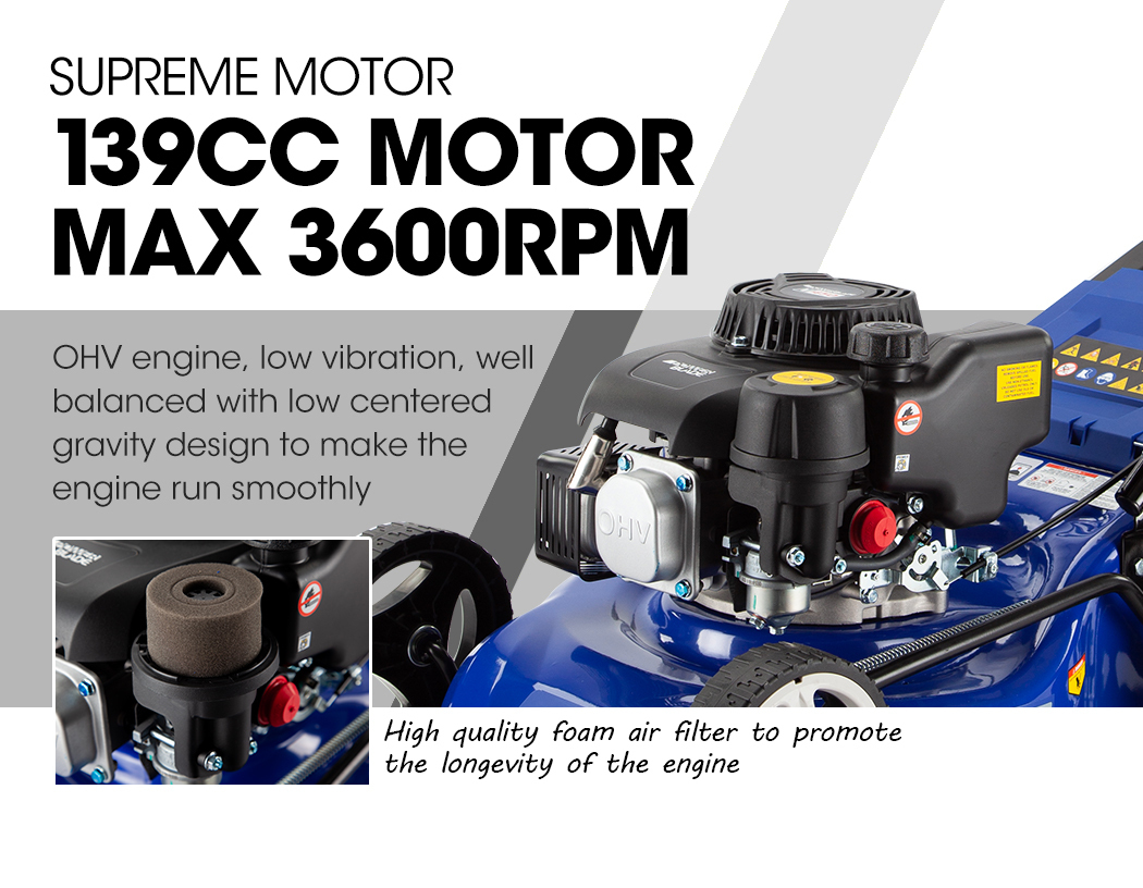 POWERBLADE Lawn Mower 139CC 17 – Petrol Powered Push Lawnmower 4 Stroke Engine