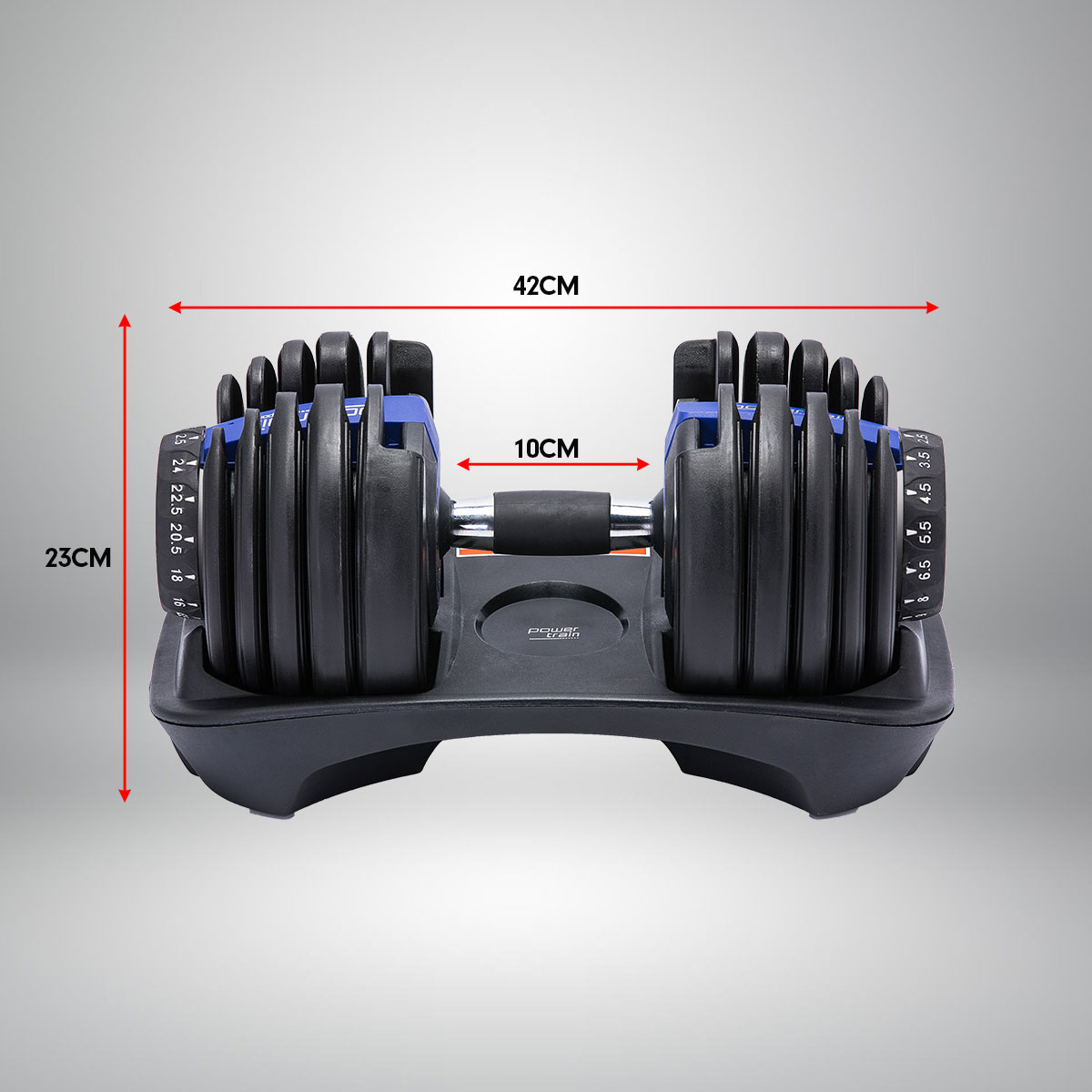 Powertrain 48KG Adjustable Dumbbell Set With Stand Blue