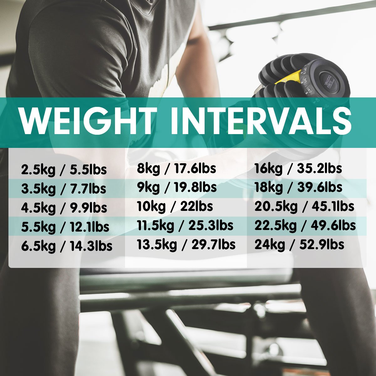The innovative locking mechanism secures only the weights that you want, a few seconds is all it takes to change the weight of each dumbbell.