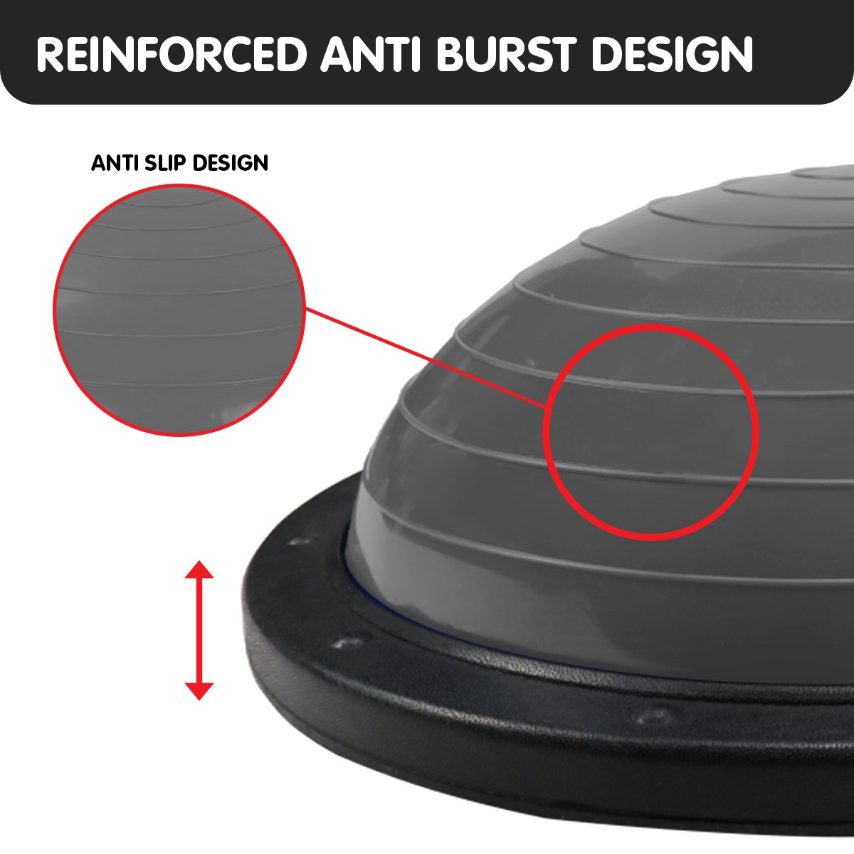 This unique balance ball features a flat side to provide a stable base, as well as a dome for balance challenges to tone the upper and lower body. With 8 rubberized anti-slip floor pads, there’s no need to worry about sliding around during an intense workout.