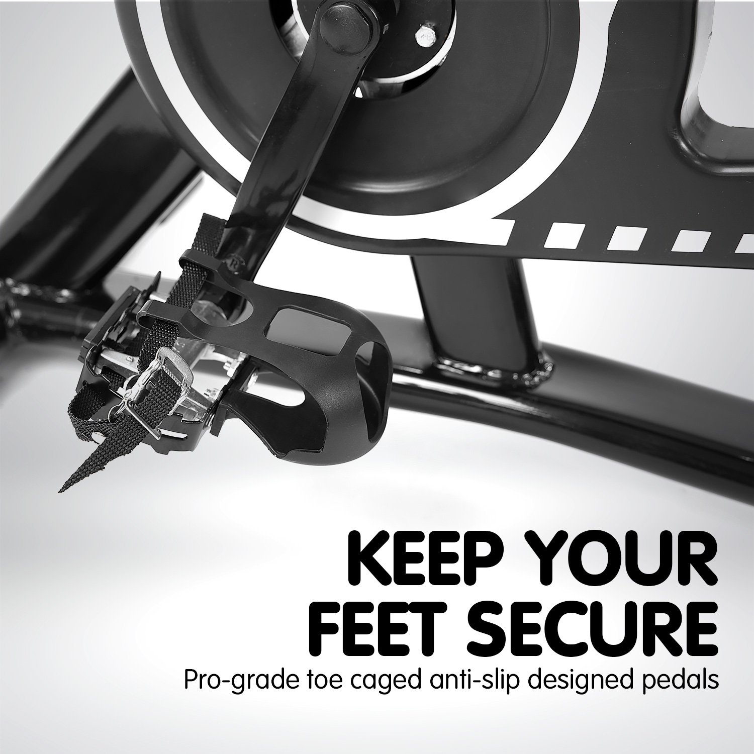 • Large pedals with toe cage design
