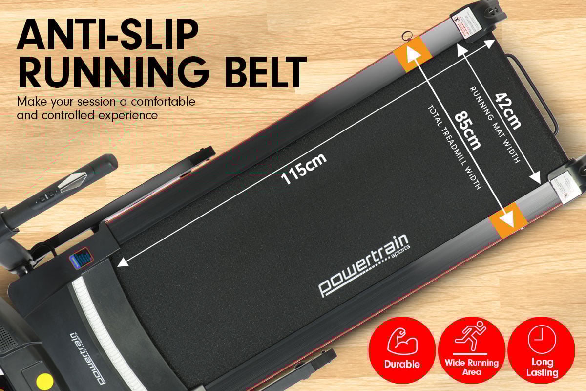 Powertrain V30 foldable treadmill is manufactured with keeping home fitness regime in mind to make indoor workouts much easier and effective with easy to use design. The spacious tread belt is perfect for running or walking comfortably.