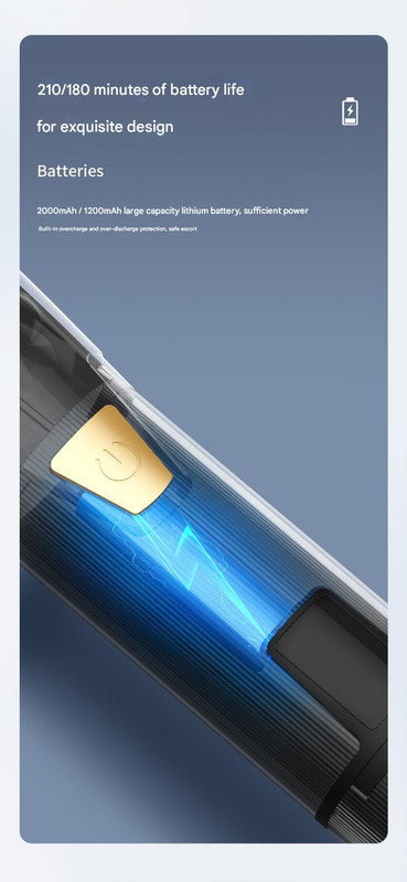 - Long Battery Life: Large capacity lithium batteries (2000mAh for clipper, 1200mAh for trimmer) provide 180-210 minutes of cordless runtime. Built-in overcharge protection.
