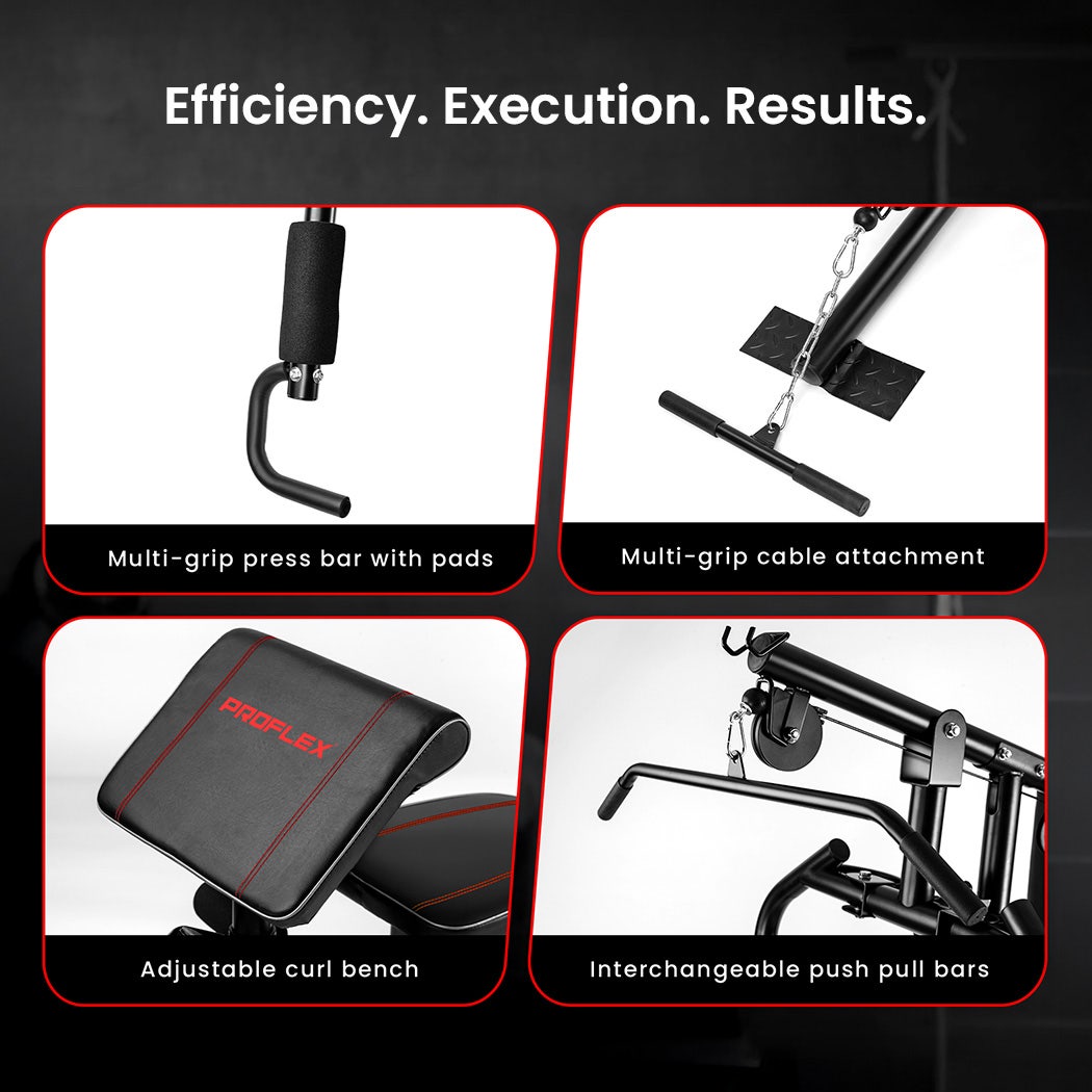 The Proflex M8000 Home Gym combines strength, reliability, and versatility in one powerful unit – helping you build muscle, boost energy, and enjoy the benefits of fitness from home.