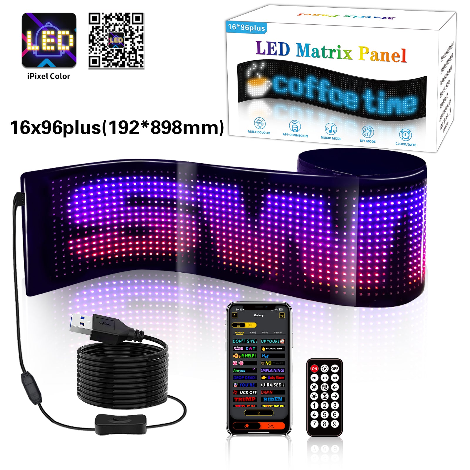- Number of LED Beads: 16*96 (1536pcs)