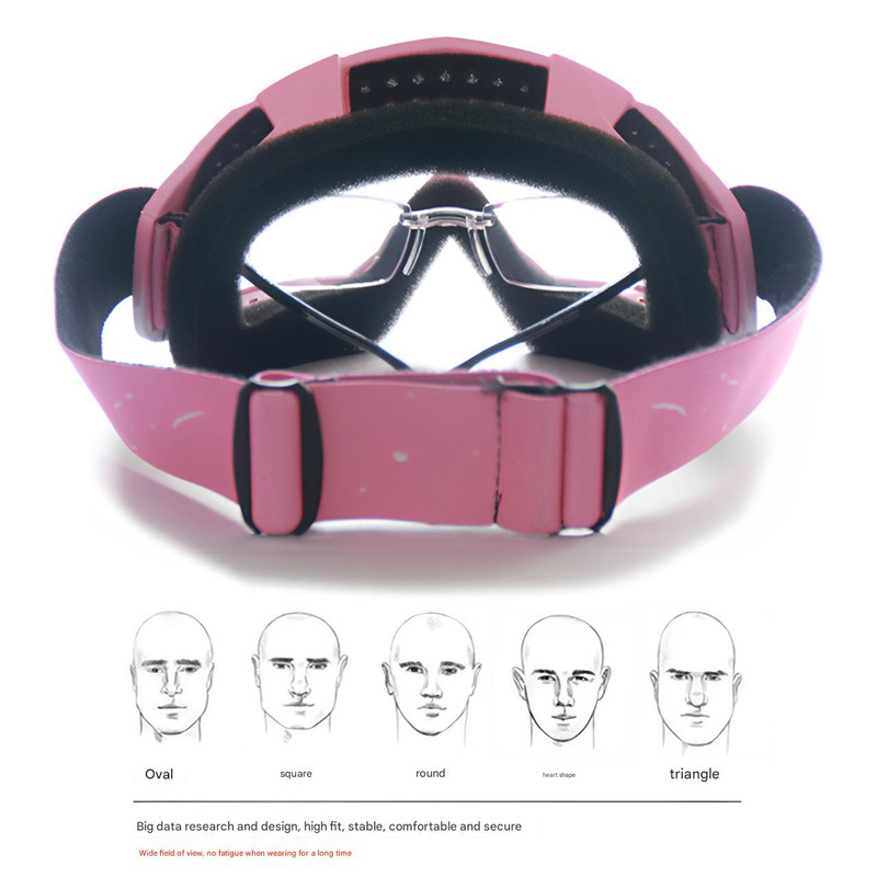 Progressive Pink + Transparent Lenses Outdoor Protective Motorcycle Goggles – Windproof, Dustproof, Skiing, and Cycling Eyewear – Lightweight Anti-Fog Design for Men and Women