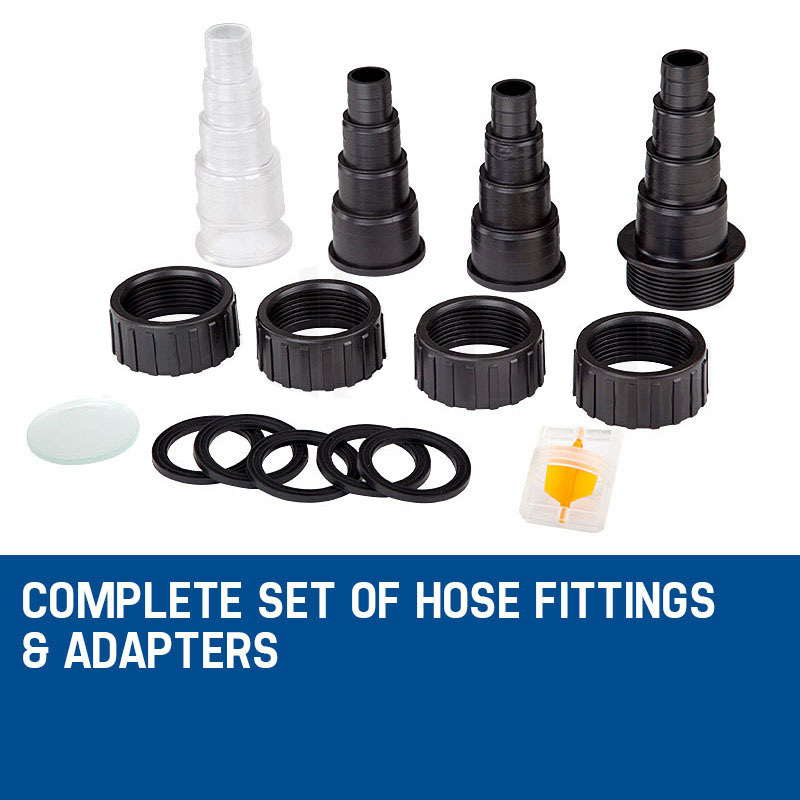 - Outlet / Inlet Hose Adaptor: 3/4′, 1′, 1-1/4′, 1=1/2′