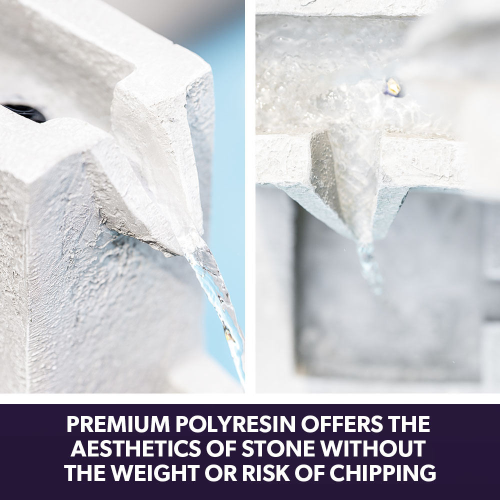 Create a beautiful calming zen ambience in any garden with this contemporary Outdoor Solar Powered Water Feature from Protege. This beautiful water fountain is crafted from premium weatherproof, non-corrosive polyresin, with intricate details that continue down each cascading level to the sturdy base.