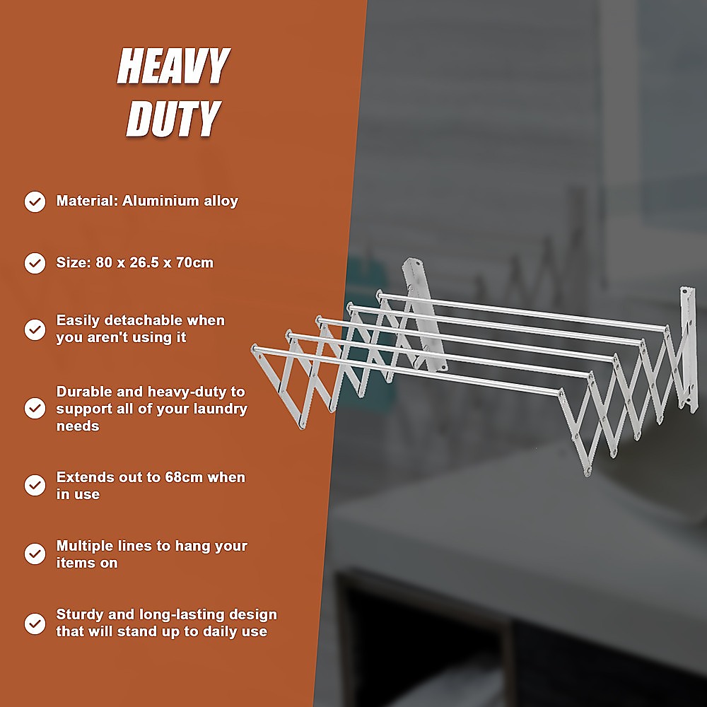 With its heavy-duty, durable design, this clothes airer extends out to 68cm and offers multiple lines for hanging clothes, towels, and bedding. Easy to install and use, it's the ideal laundry accessory for compact living spaces.