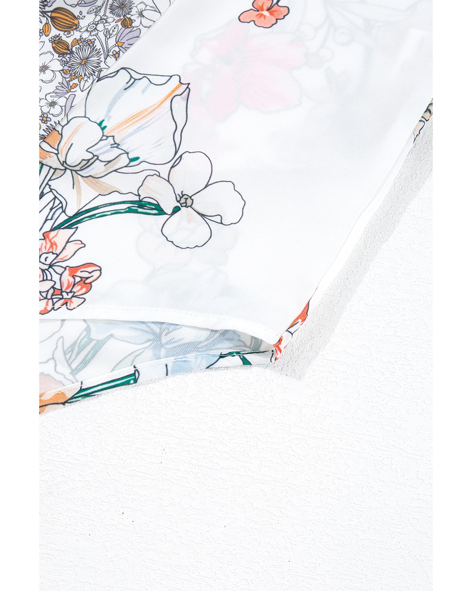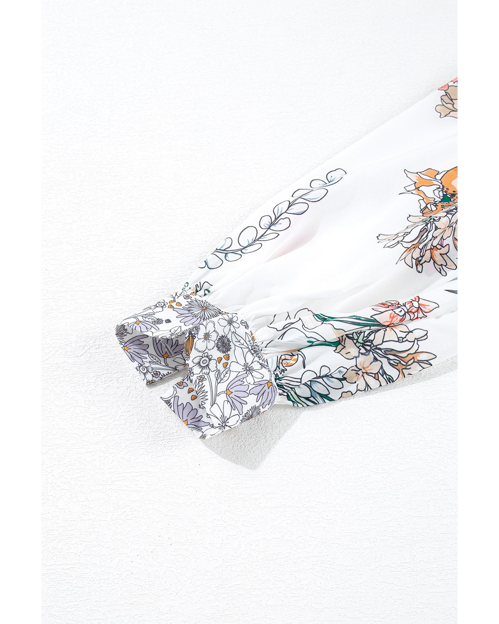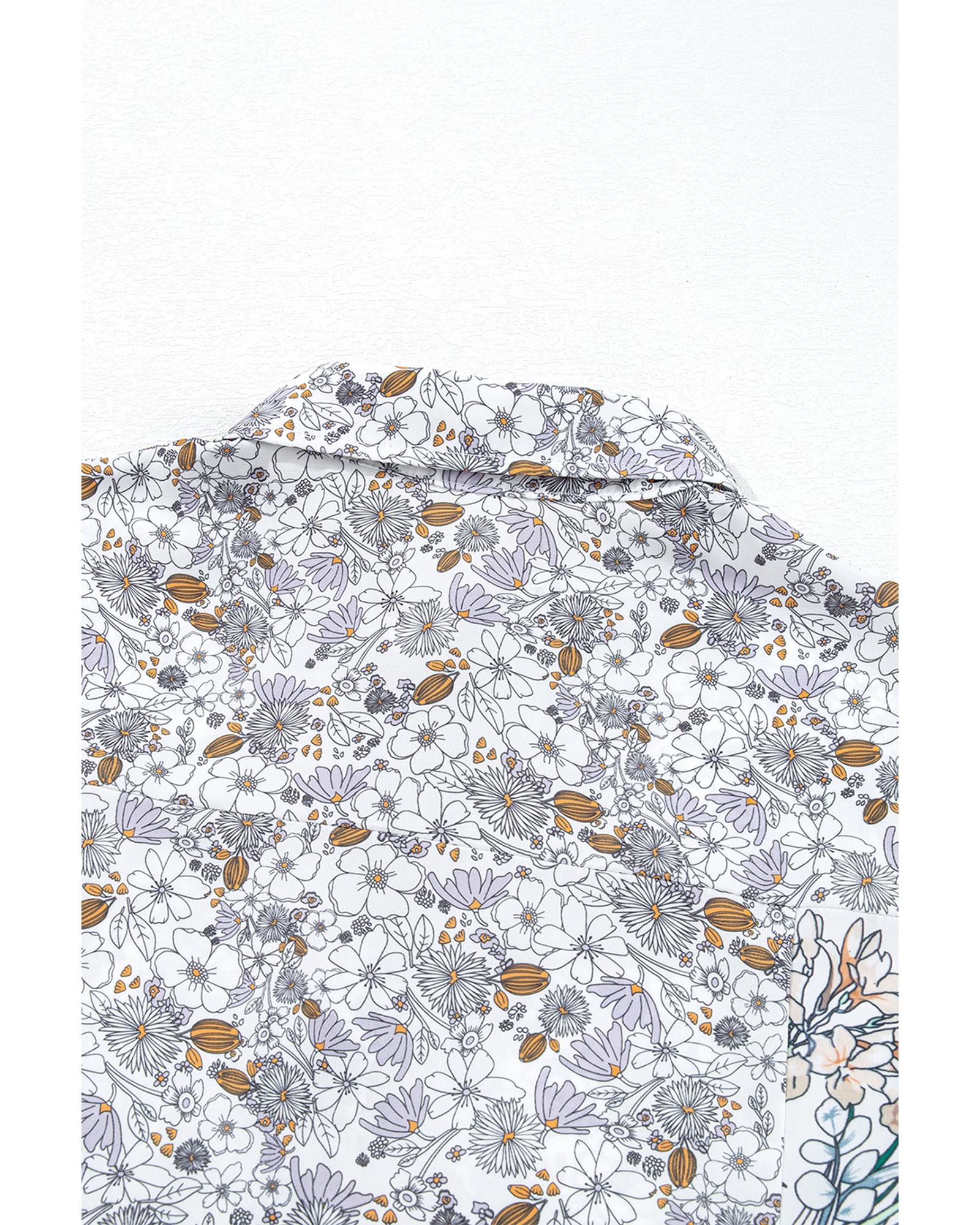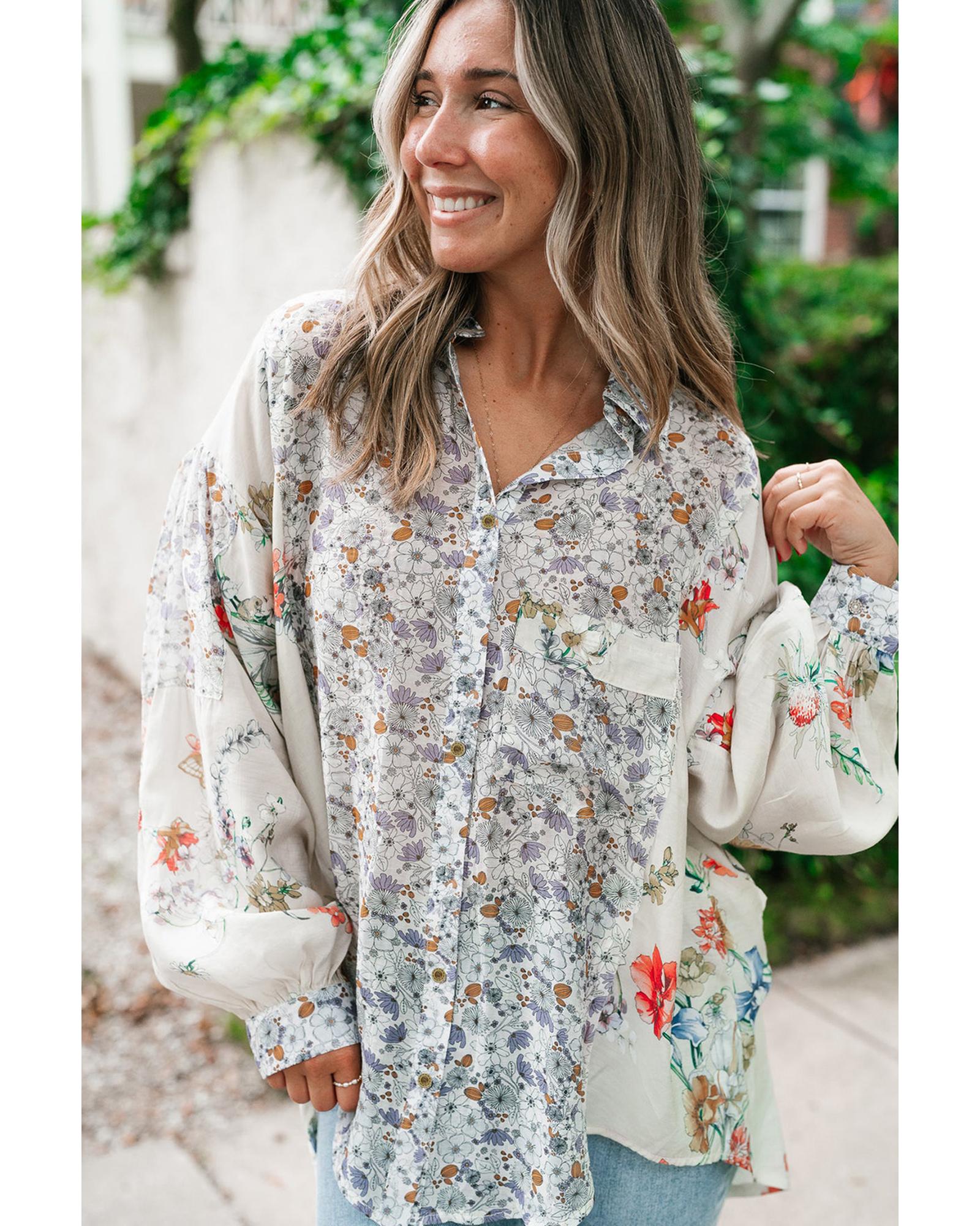 - Purple Boho Floral Bishop Sleeve Button Up Loose Shirt