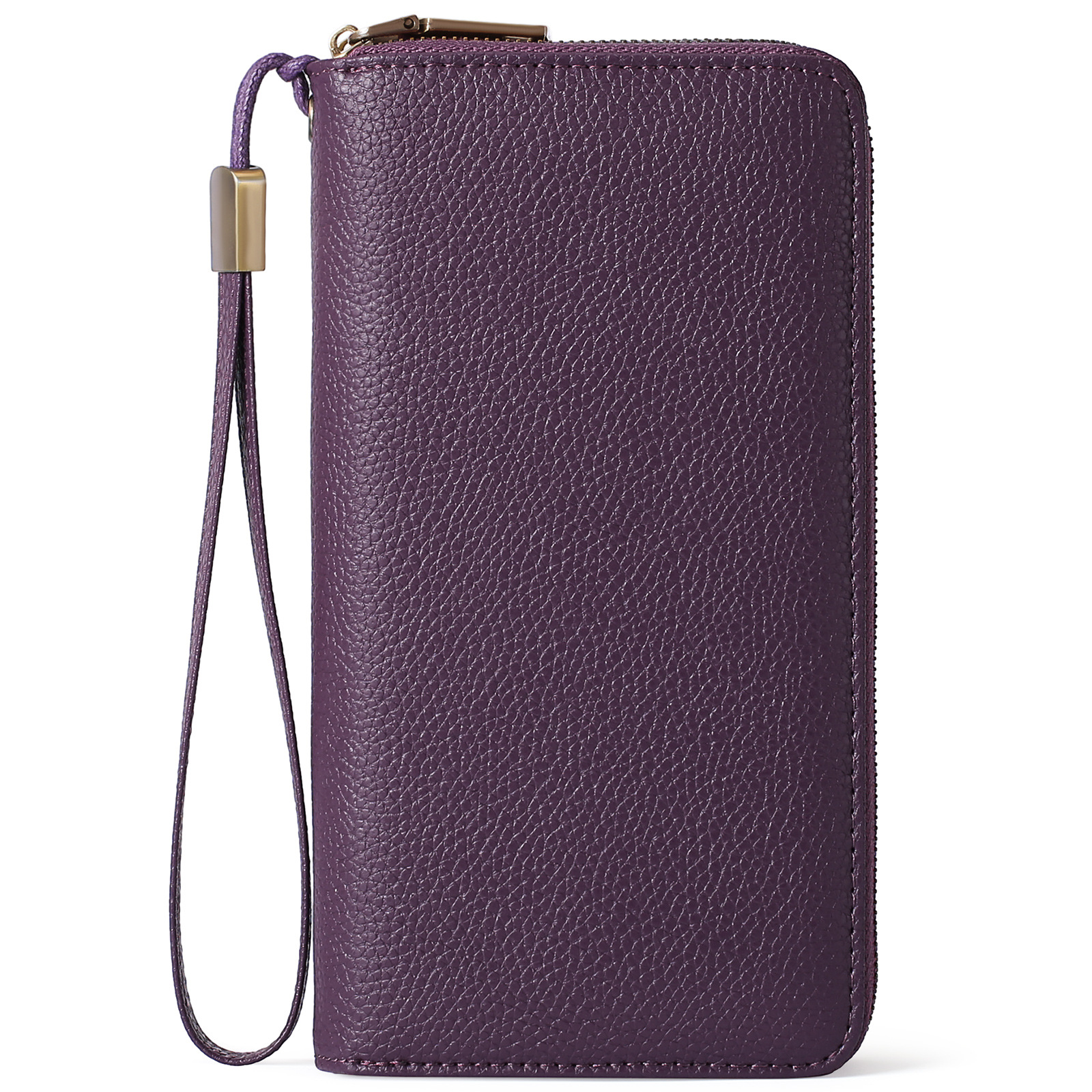 Purple Double Zipper Women’s Wallet – Large Capacity Clutch Organizer with Wristlet Strap