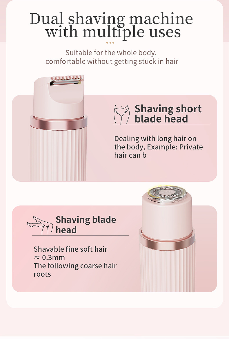 Experience smooth, flawless skin with our Women’s Double-Headed Electric Shaver, designed for effortless hair removal. This innovative painless hair remover features a dual-head design with a shaving blade and short blade trimmer, perfect for private areas, underarms, and the whole body. Its safe, skin-friendly technology ensures no black spots or irritation, making it a must-have for every beauty routine.