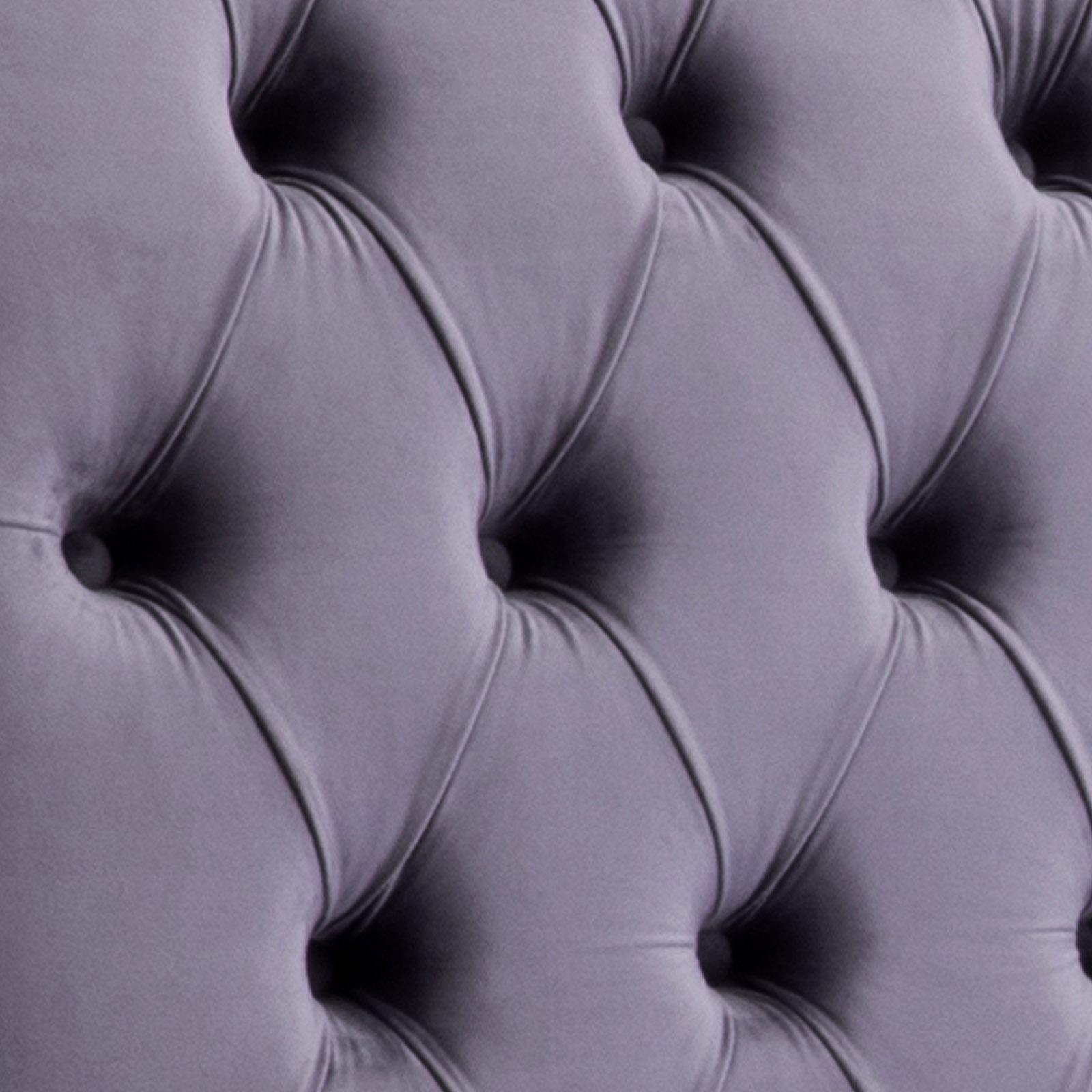 Queen Size Sleigh Bedframe Velvet Upholstery Grey Colour Tufted Headboard And Footboard Deep Quilting