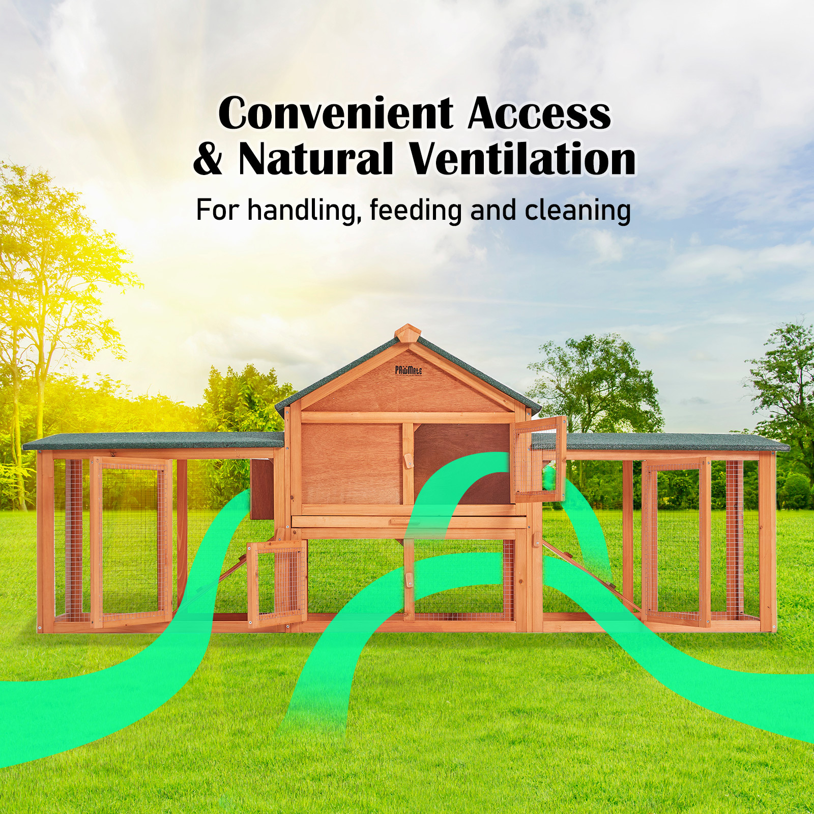 If they are living outdoors, it is important to keep them cool on hot days as they are prone to heat stress which can be fatal. Not to mention, our hutch features a well-insulated and weatherproof green asphalt roof that can withstand heat, rain, and wintry weather.