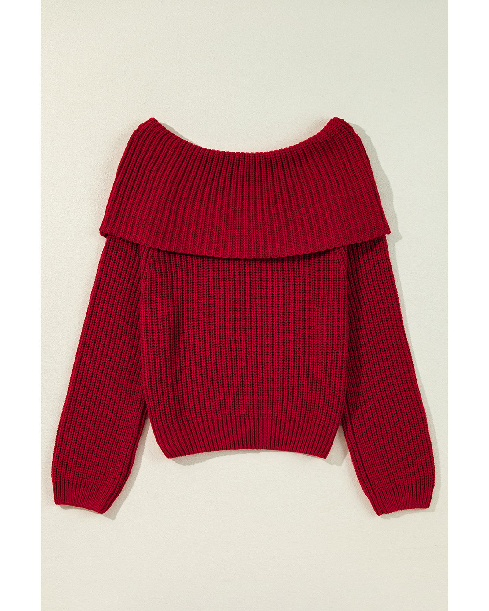 Racing Red Off-the-shoulder Knit Sweater – XL