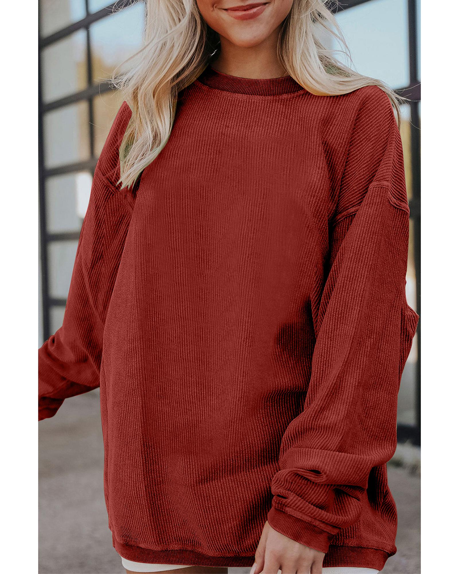 Racing Red Ribbed Corded Oversized Sweatshirt – 2XL