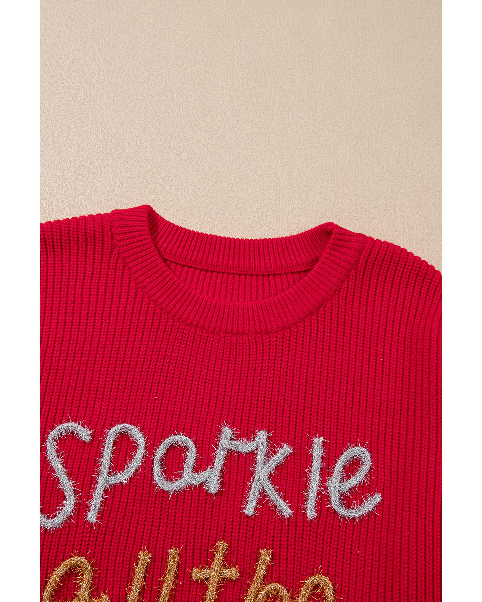 Racing Red Sparkle All The Way Tinsel Crew Neck Plus Size Sweater – 1X