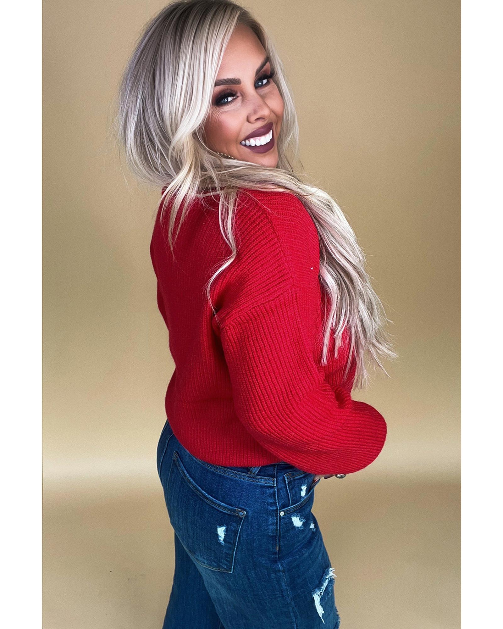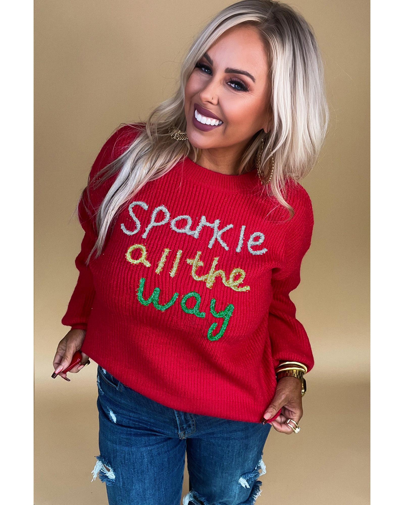 - Racing Red Sparkle All The Way Tinsel Crew Neck Plus Size Sweater