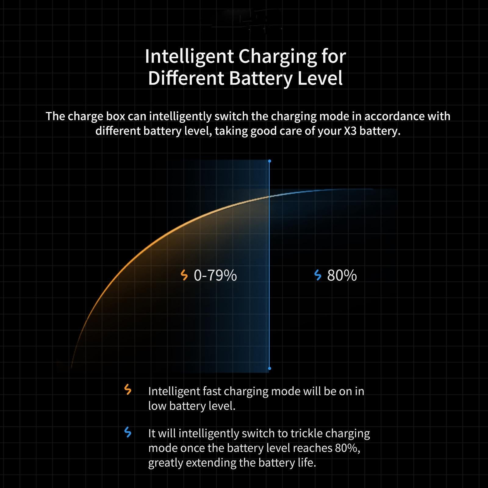 • According to the different battery power status, intelligent switching charging mode, low power fast charging, high power trickle, full power that stops