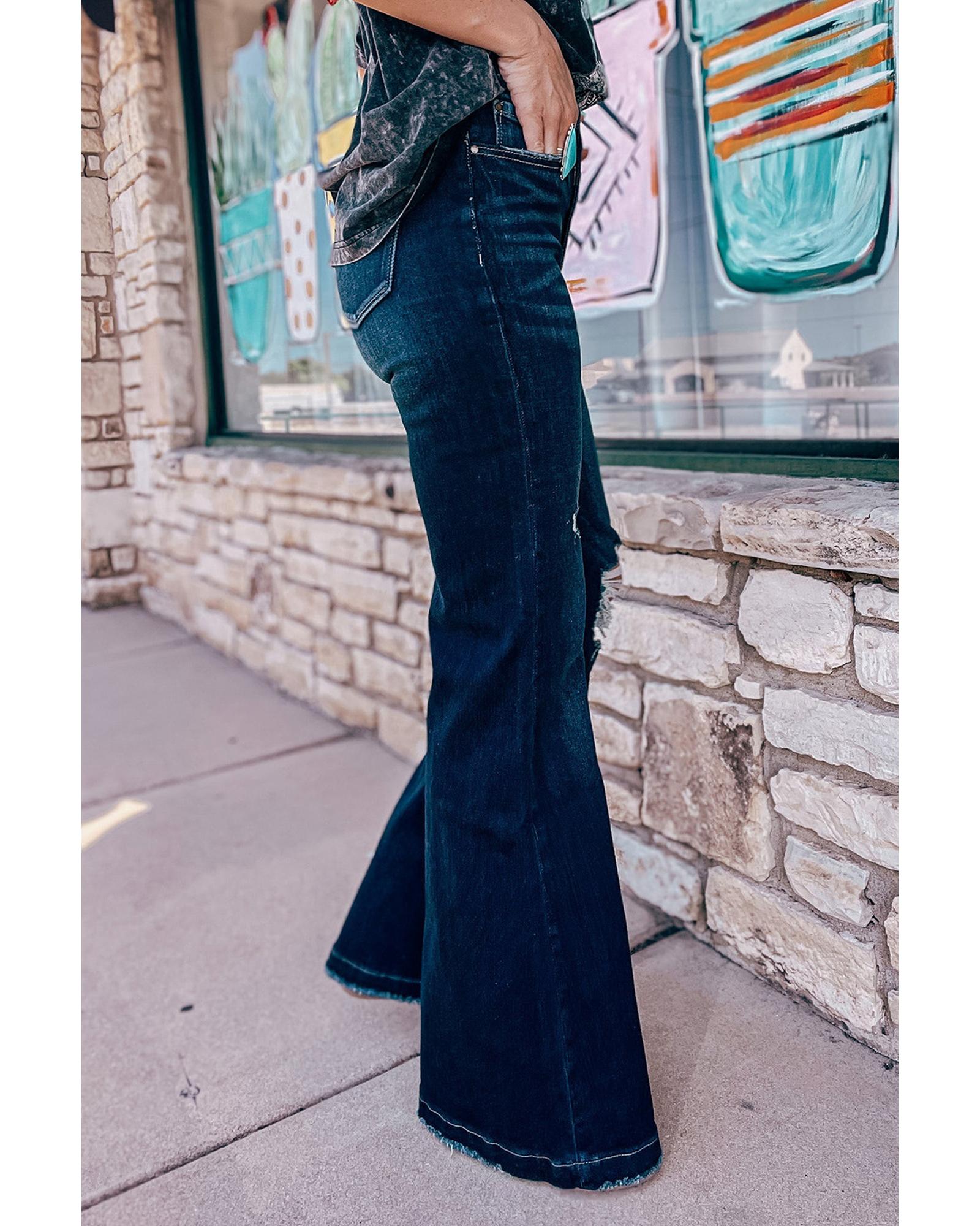 Real Teal High Rise Ripped Bell Bottom Jeans – 10 US