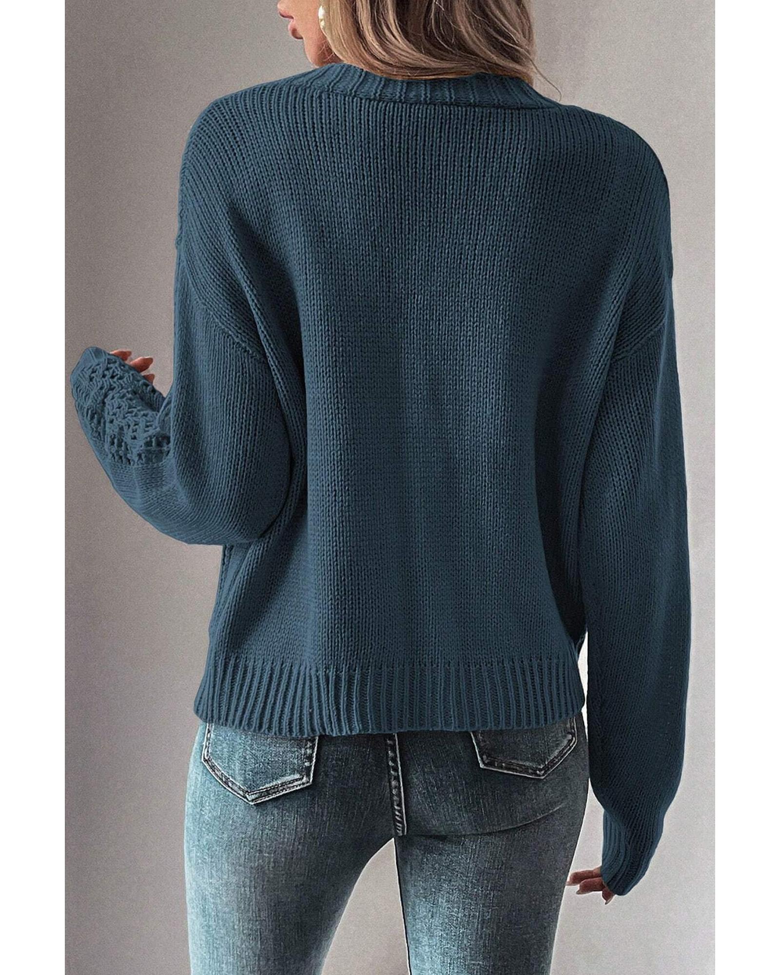 Real Teal Open Knit Drop Shoulder Sweater Cardigan – 2XL