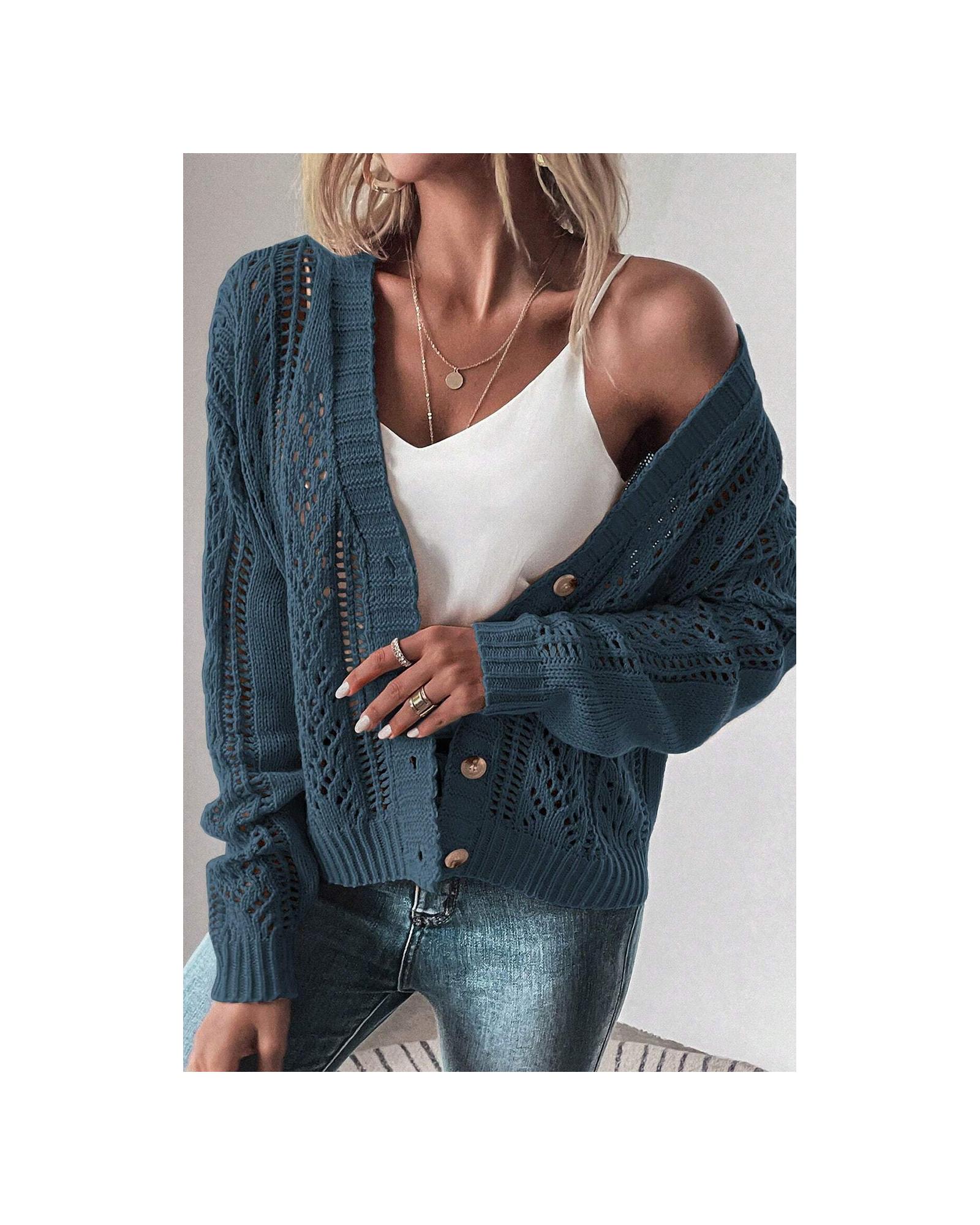 Real Teal Open Knit Drop Shoulder Sweater Cardigan – XL