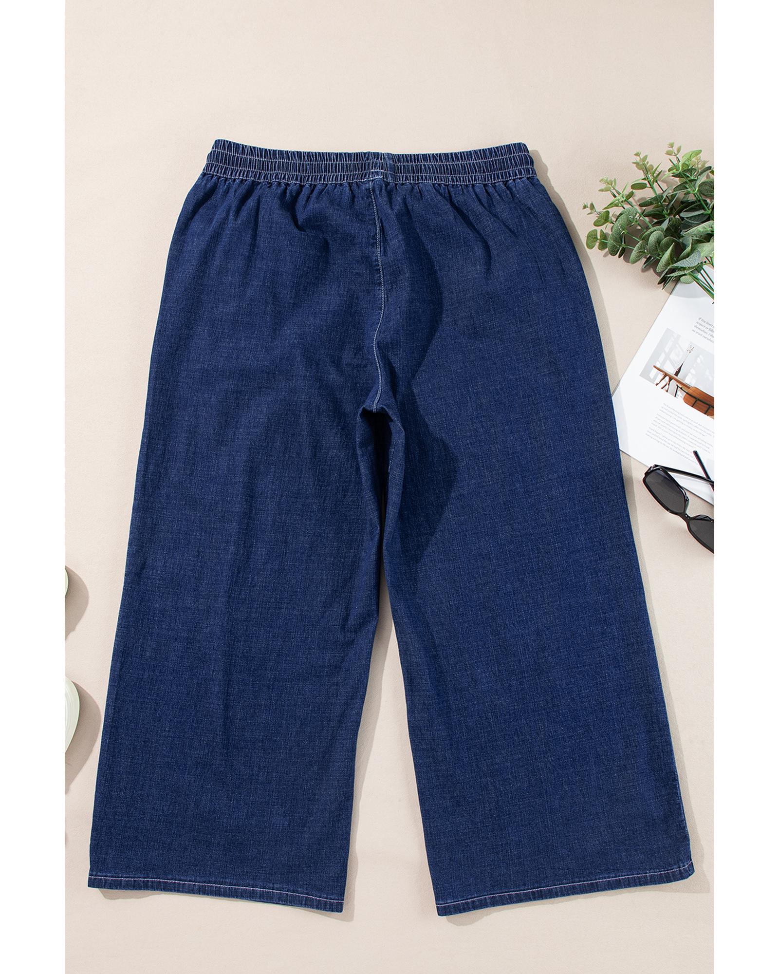 Real Teal Plus Size Drawstring High Waist Wide Leg Casual Jeans – 1X