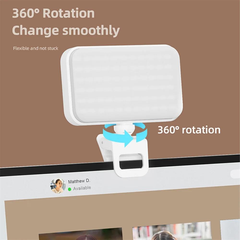 • 1 x 66 Leds Selfie Fill Light Rechargeable 3 Modes Clip-On Pocket Light For Phone Laptop Tablet Meeting Black