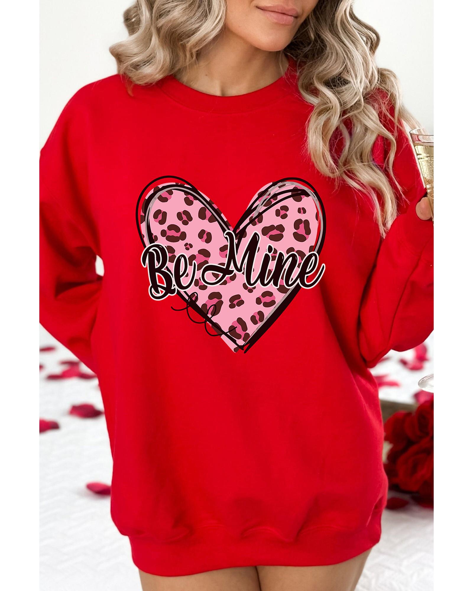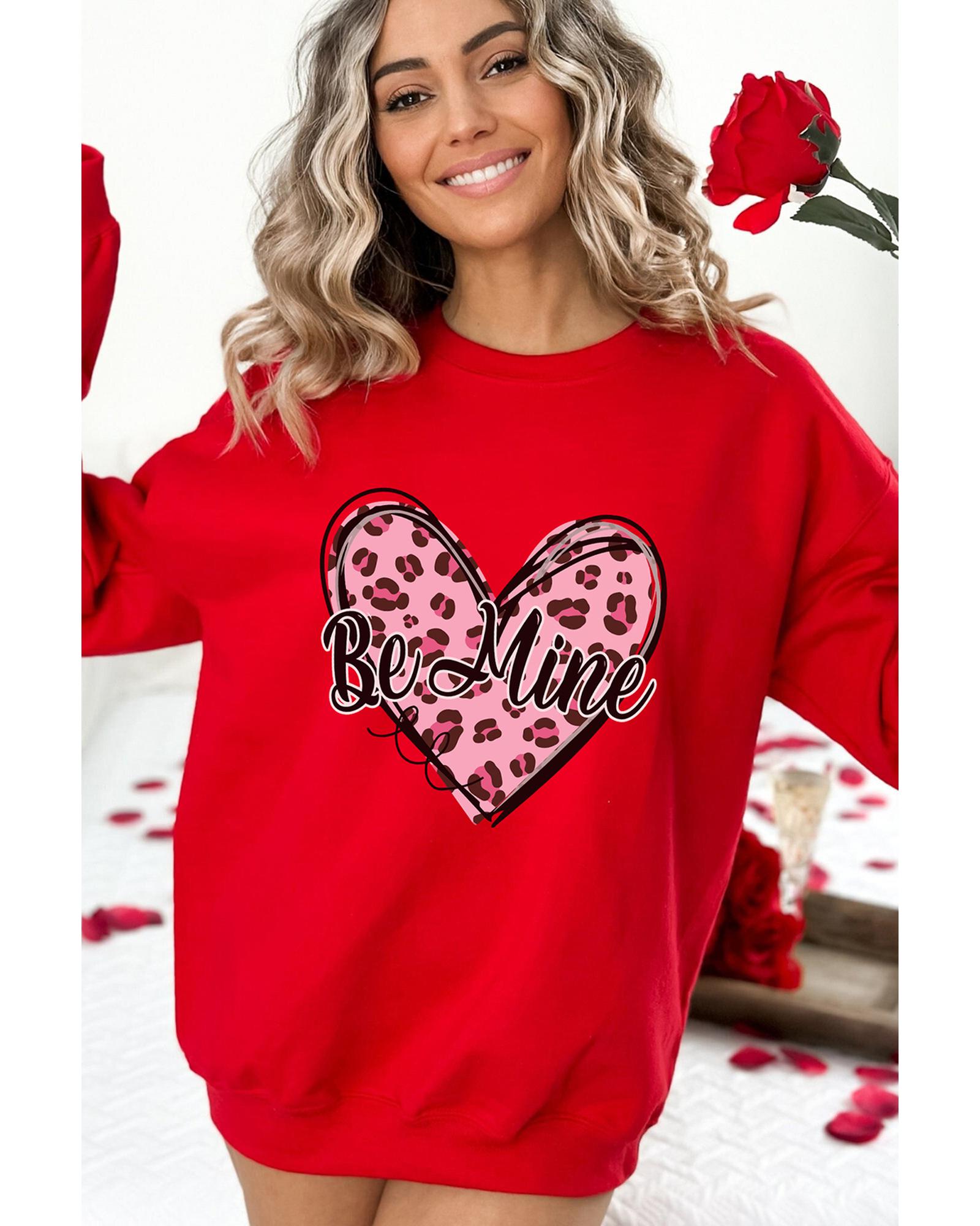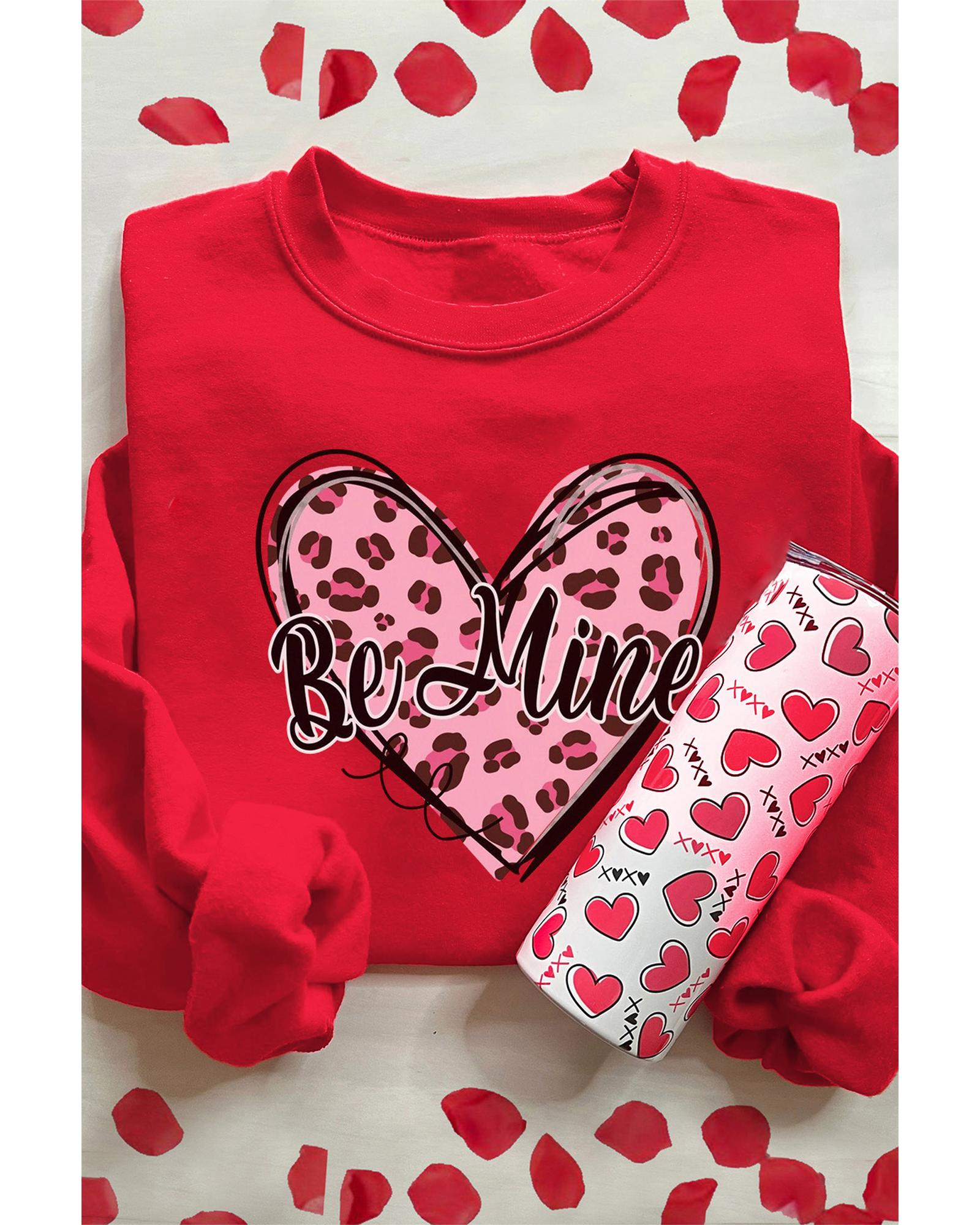 - Red Be Mine Leopard Heart Printed Sweatshirt
